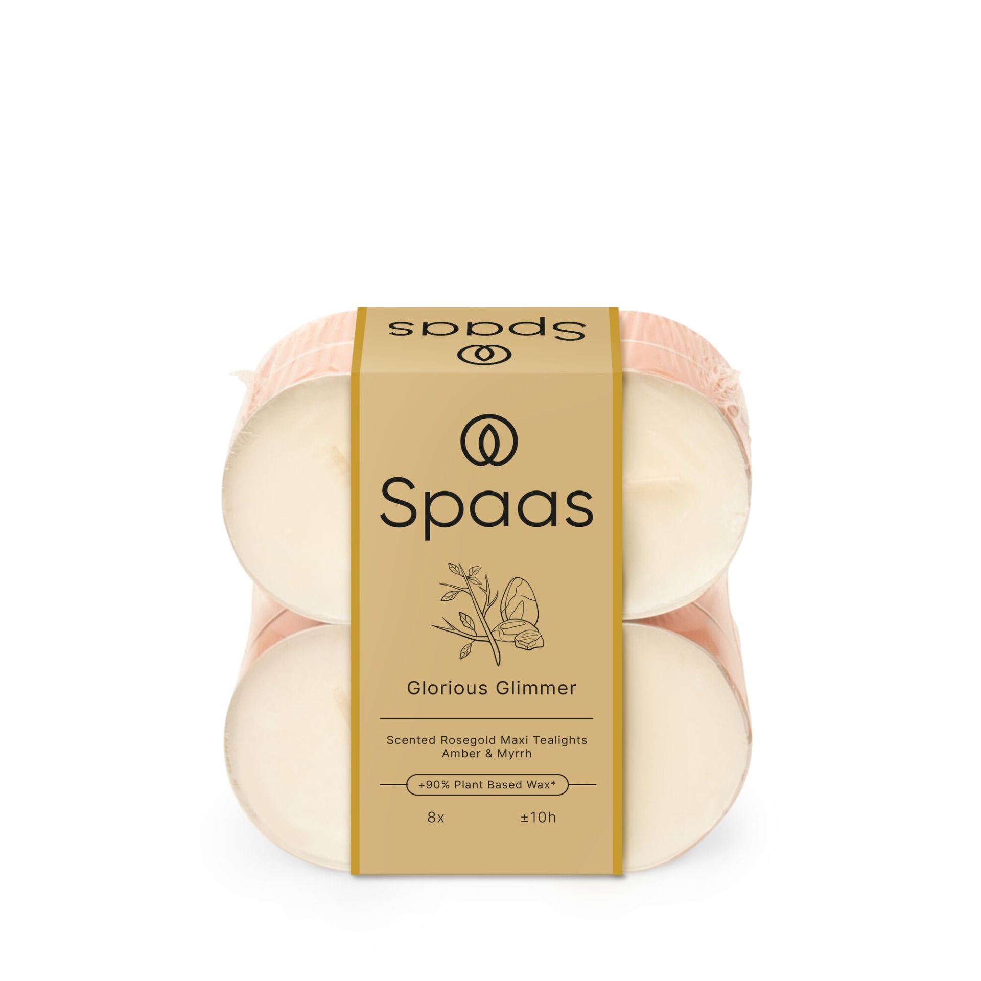 Spaas Theelichten Maxi Geparfumeerd Rose Gold 8 stuks Glorious Glimmer - Amber and Myrrh - 10 Branduren