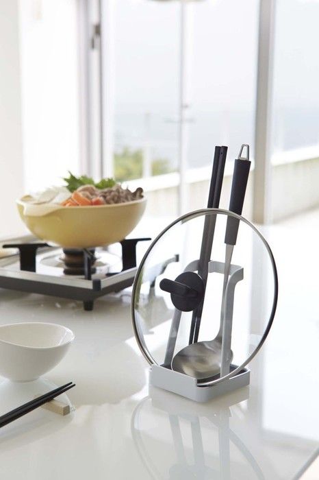 Spatel en Deksel Staander - Tower Yamazaki - 10x10x15cm - RVS - Wit