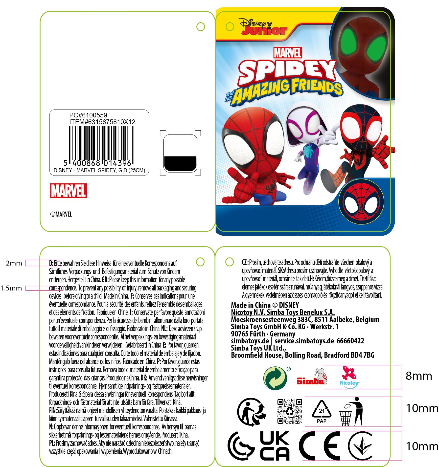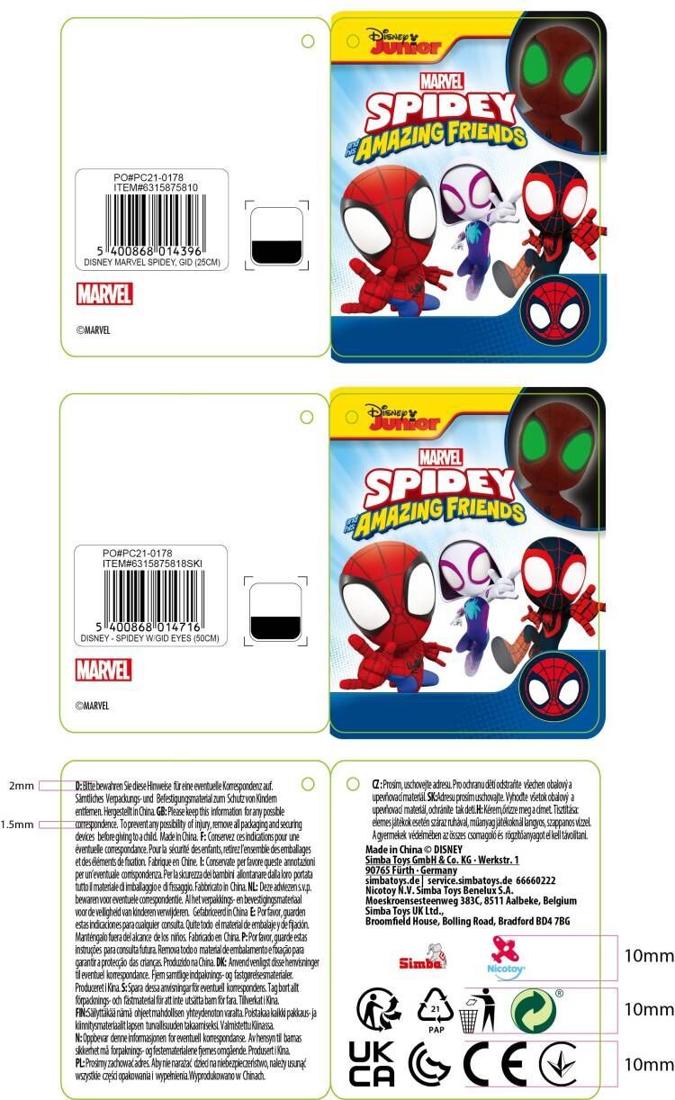Spidey and His Amazing Friends Spidey met Glow in The Dark Ogen 25 cm