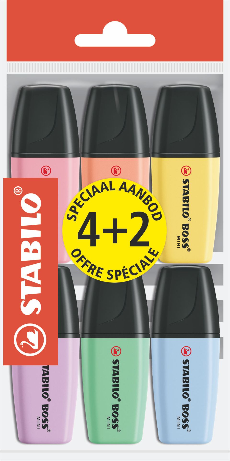 STABILO BOSS Markeerstift Original Mini Pastel 4+2 Gratis