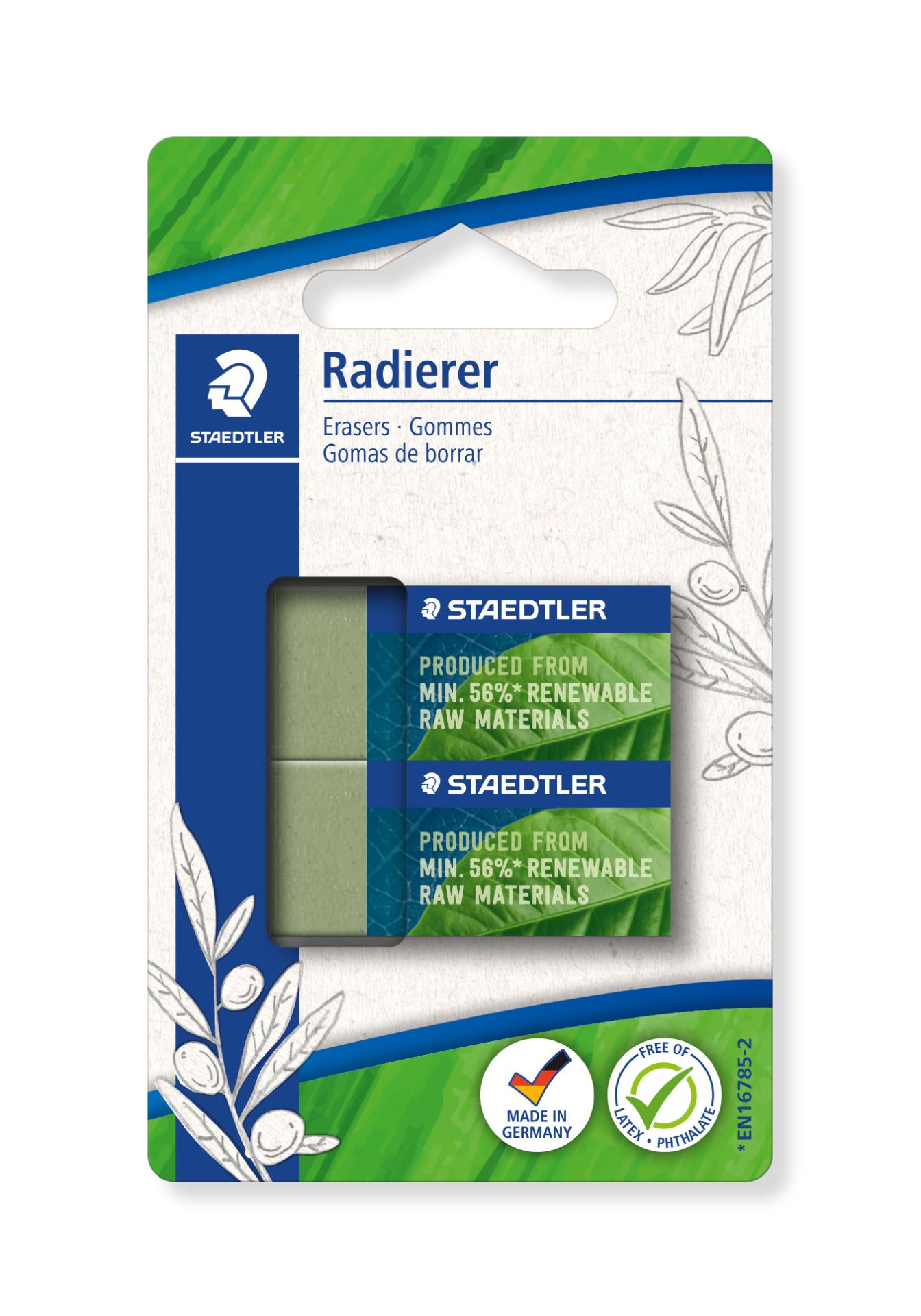 Staedtler Eco Gom 2 stuks Olijfgroen - 43x19x13 mm - Blister