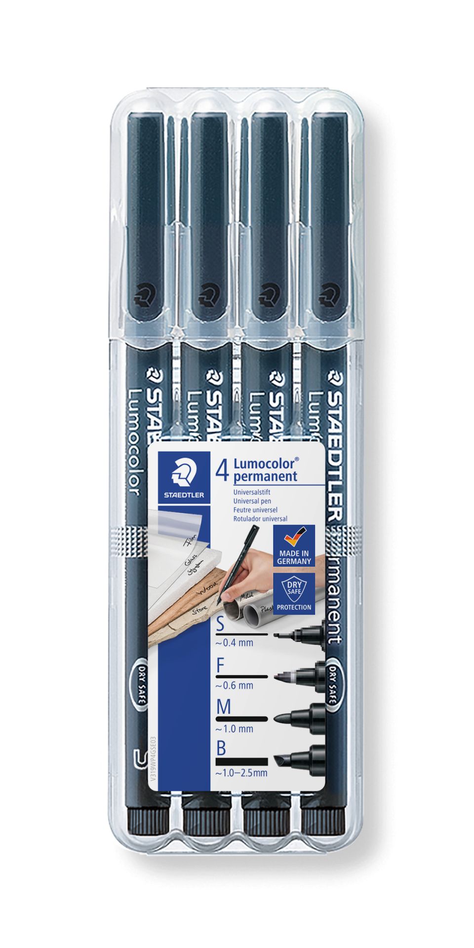 Staedtler Lumocolor Permanent 4 stuks - Assorti Lijnbreedte - Zwart