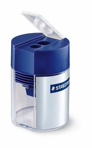 Staedtler Potloodslijper Metaal Dubbel met Potje - Grijs/Blauw