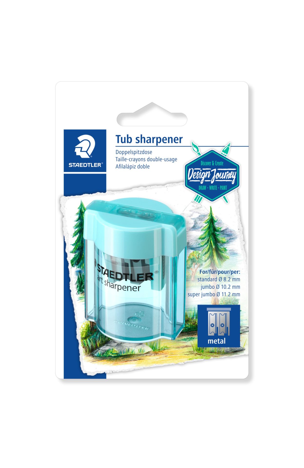 Staedtler Potloodslijper Metaal Dubbel met Potje - Transparant Blauw - Blister