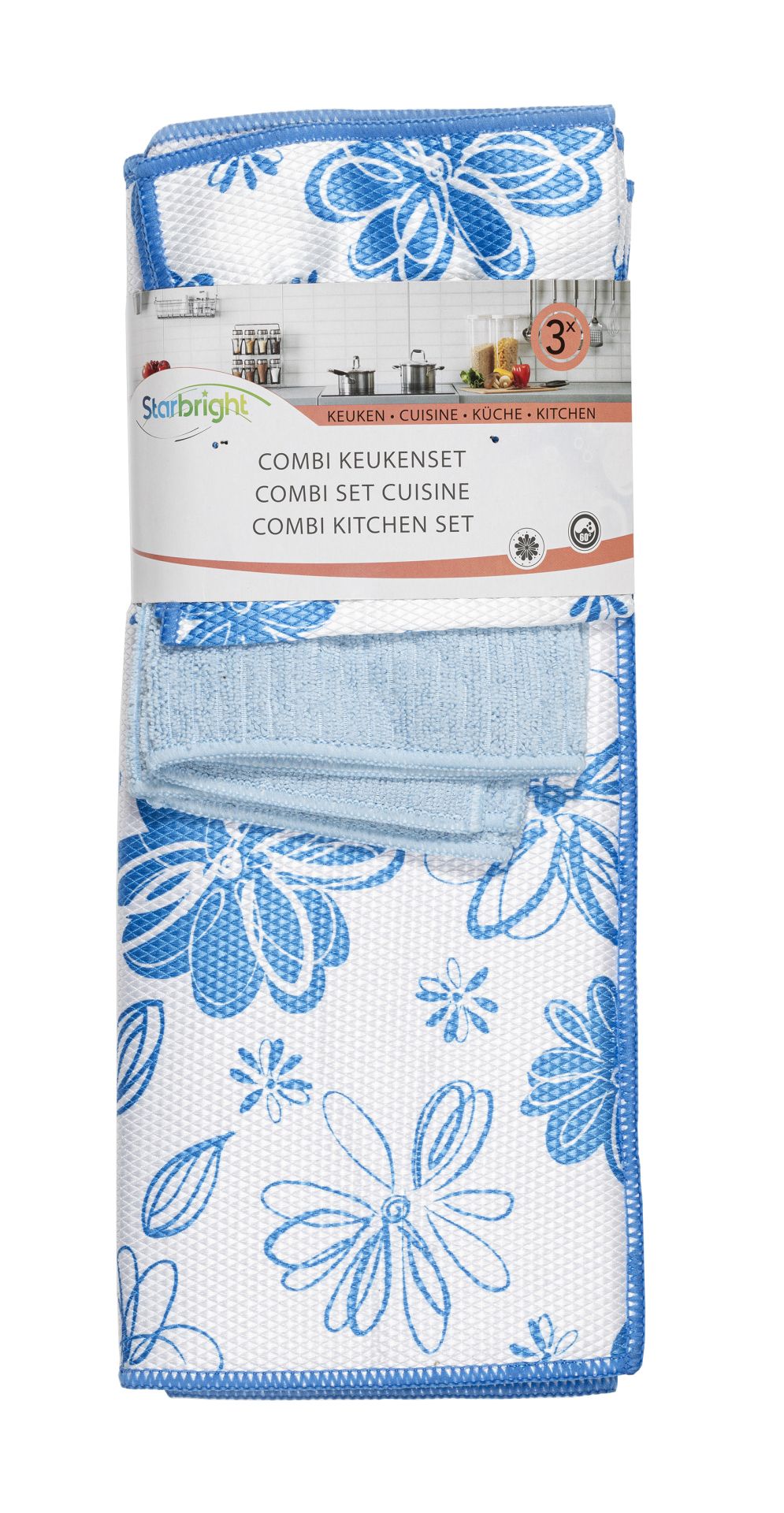 Starbright Keukenset Combi - Afdruipmat 38x50 cm + Microvezeldoek 41x38 cm + Microvezel Schuurdoek 31x31 cm