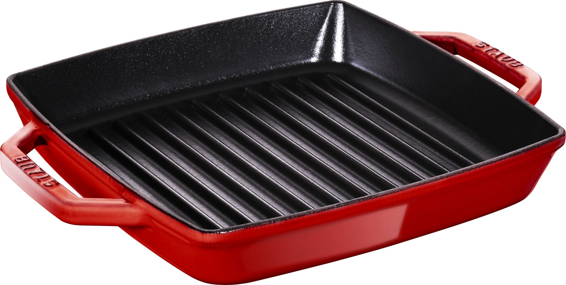 Staub Grillpan Kersenrood 23x23 cm met 2 Grepen - Gietijzer - alle Vuren
