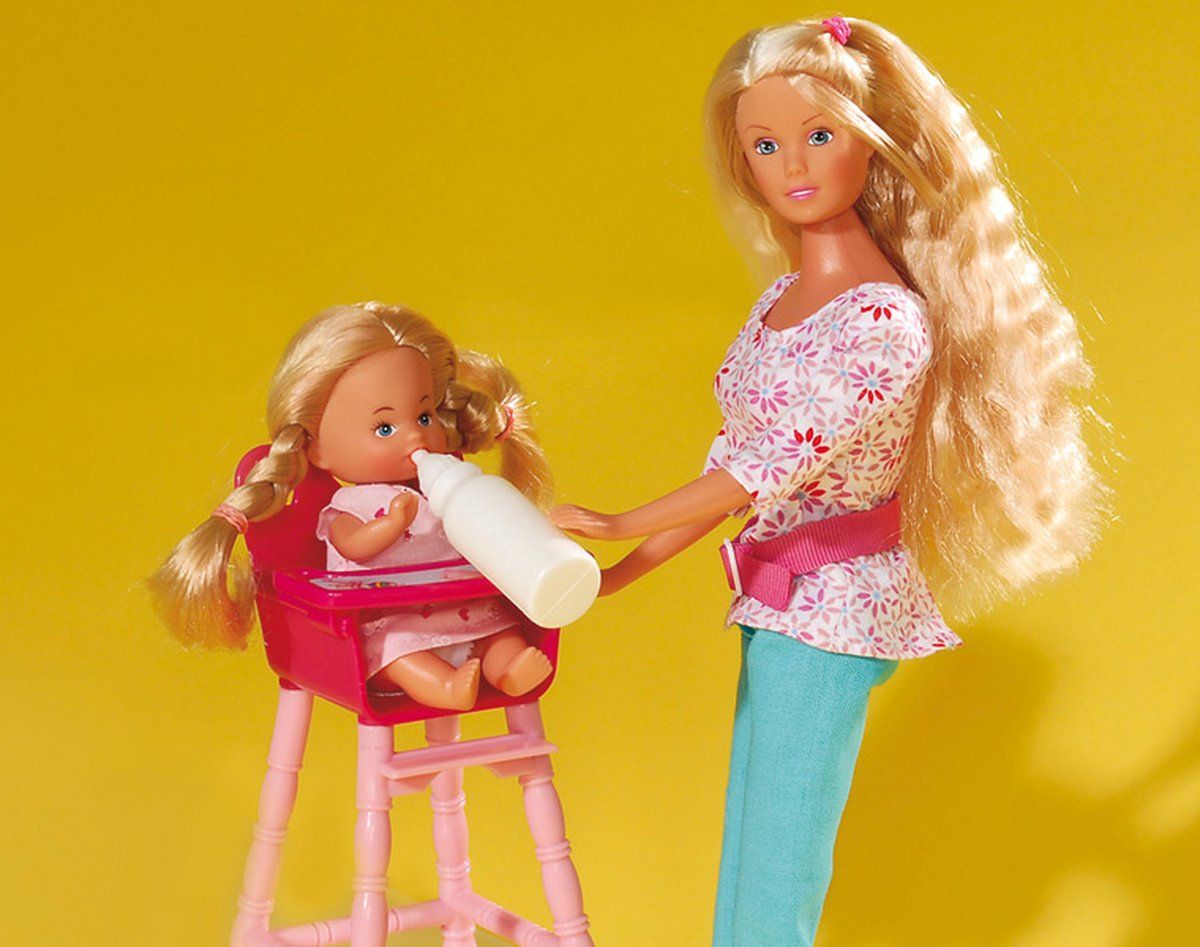 Steffi Baby World, kinderverzorgster steffi + 3 babies, bed, stoel, potje,...