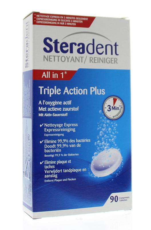 Steradent Tandreiniger Triple Action Plus Allin1- 90 tabs