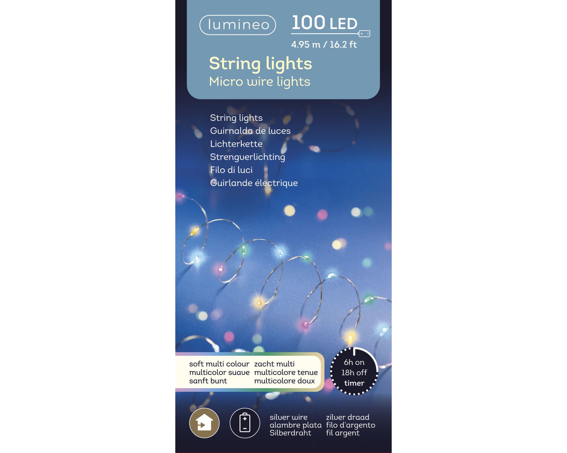 Strengverlichting Micro LED 4.95m - 100 leds - Silver/Soft Multi Colour - Kerstverlichting