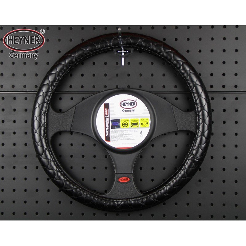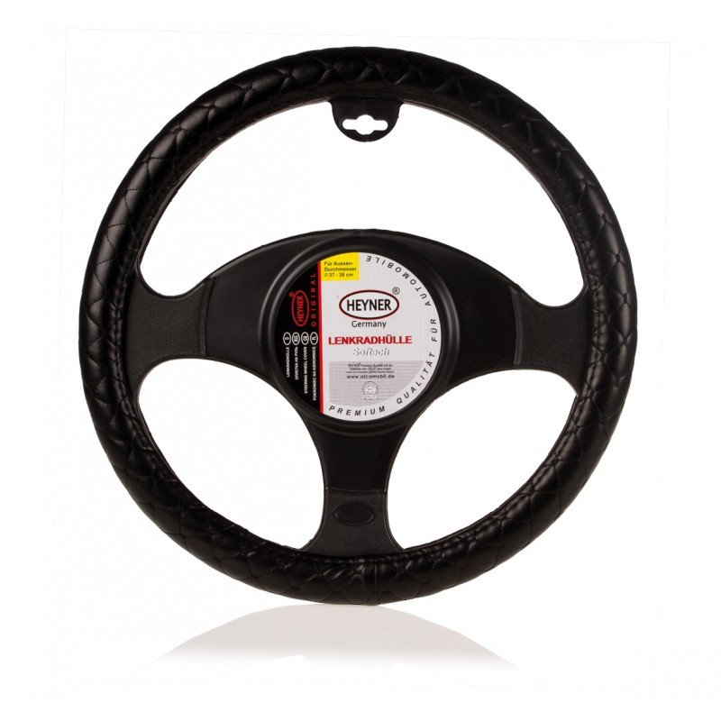 Stuurwielhoes Heyner soft comfort zwart PVC kruispatroon geborduurd