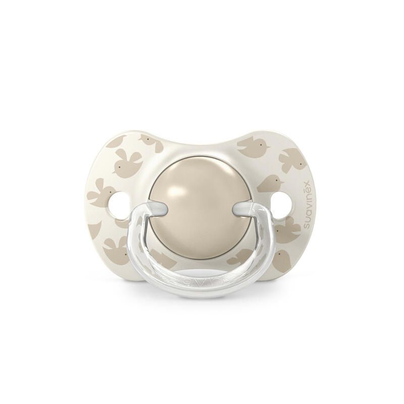 Suavinex Fopspeen SX Pro Birdies Silicone Symmetrisch Beige 6-18 maand - 2 stuks