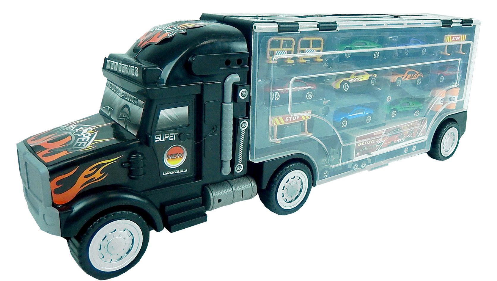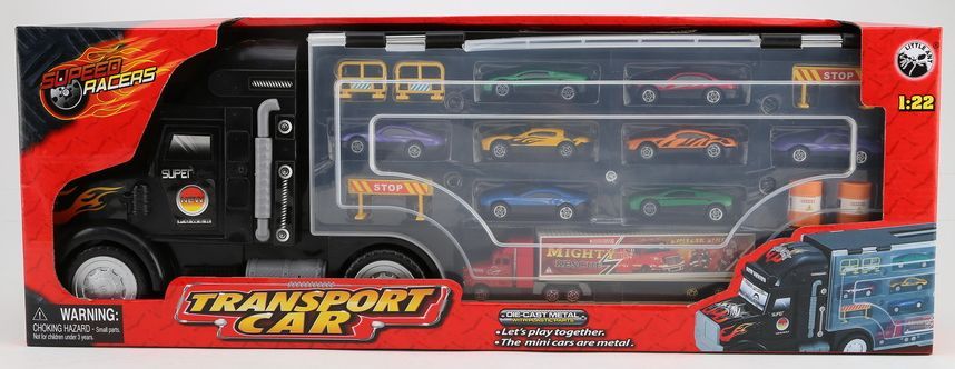 Super Truck Carry Case, auto transporter met 8 Metalen Autos en 6 Accessoires