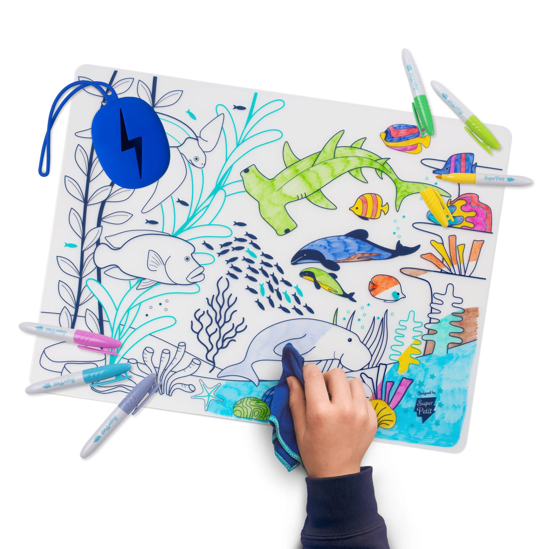 SuperPetit Microvezeldoek voor Placemat met Silicone Houder Blauw