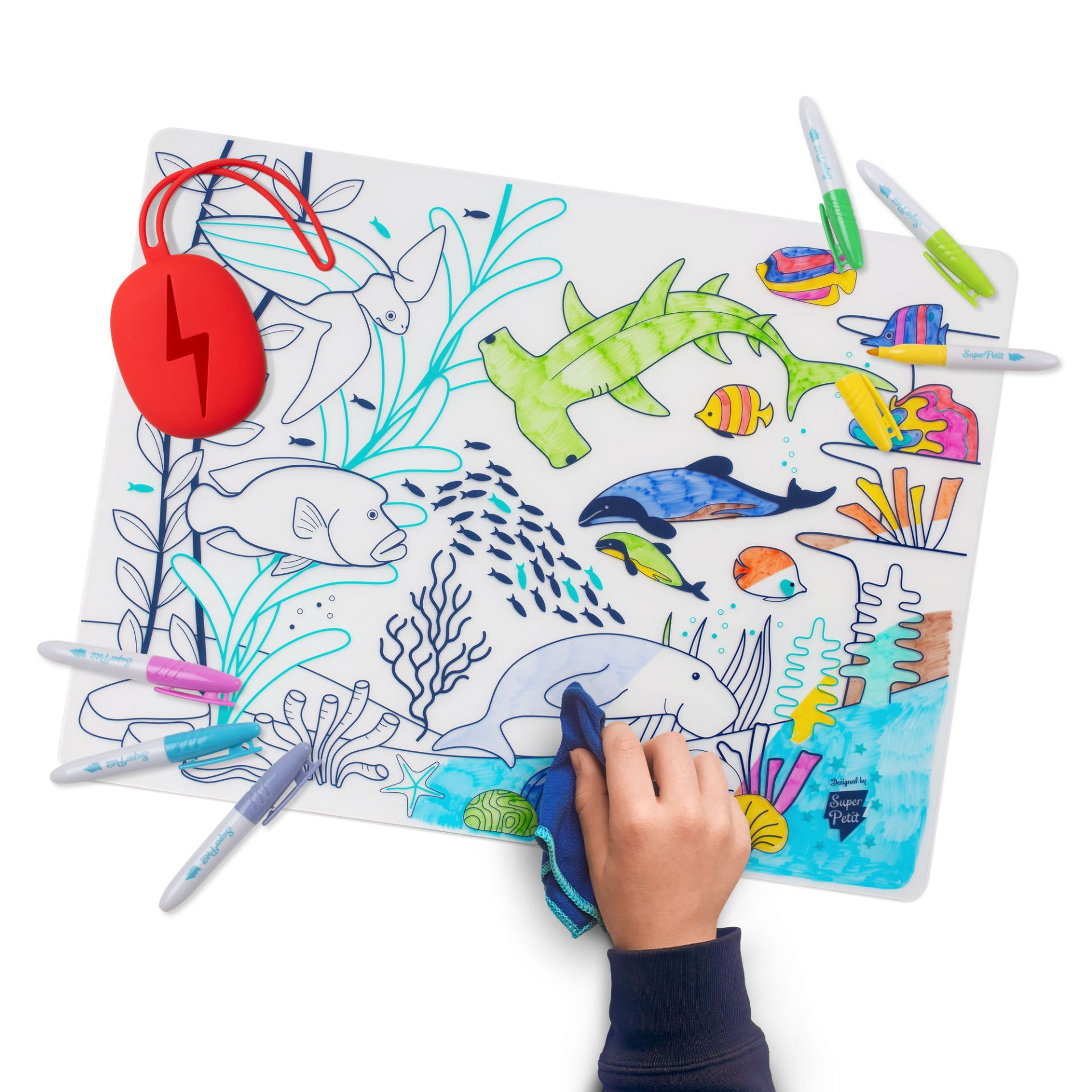 SuperPetit Microvezeldoek voor Placemat met Silicone Houder Rood
