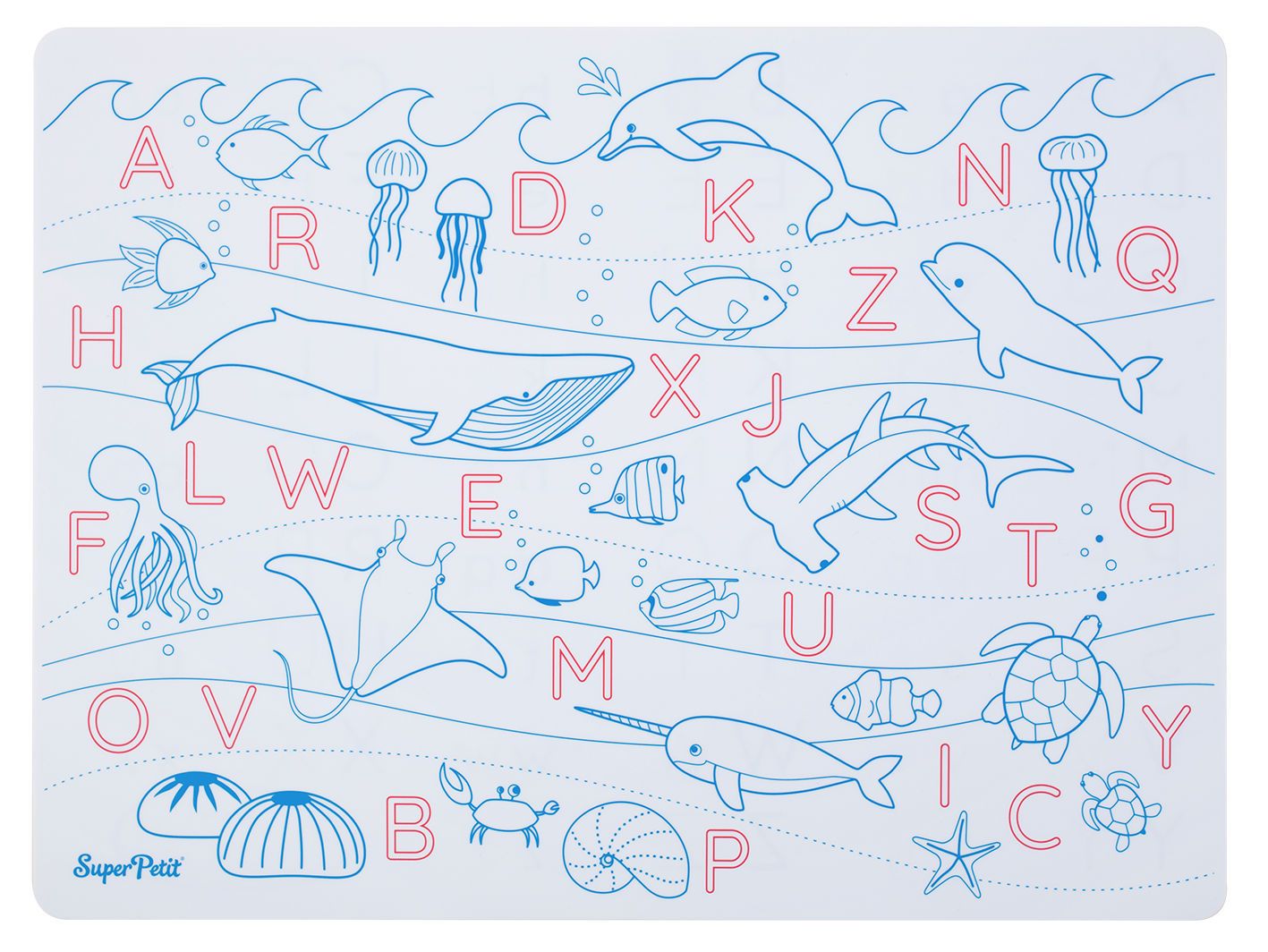 SuperPetit Silicone Placemat Inkleurbaar-Uitwisbaar Learn&Play ABC met Stiften 40x30 cm