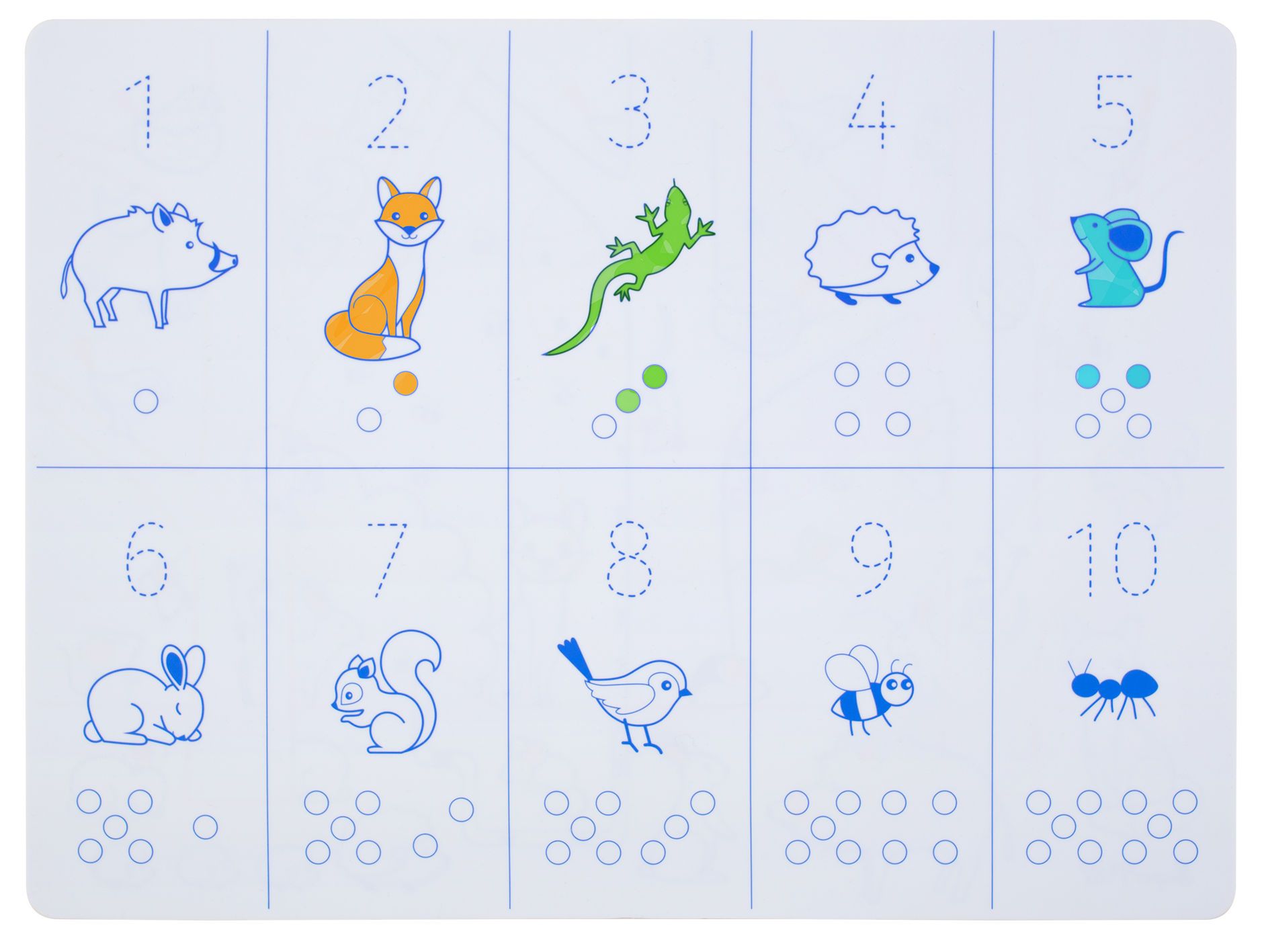 SuperPetit Silicone Placemat Inkleurbaar-Uitwisbaar Learn&Play Cijfers met Stiften 40x30 cm