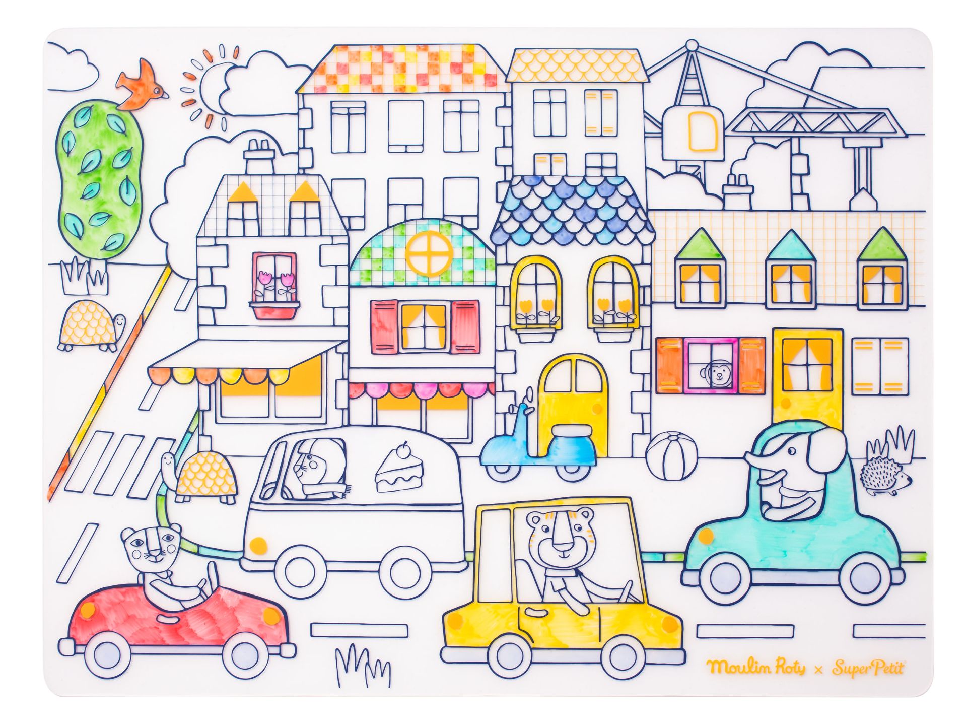 SuperPetit Silicone Placemat Inkleurbaar-Uitwisbaar Les Popipop met Stiften 40x30 cm