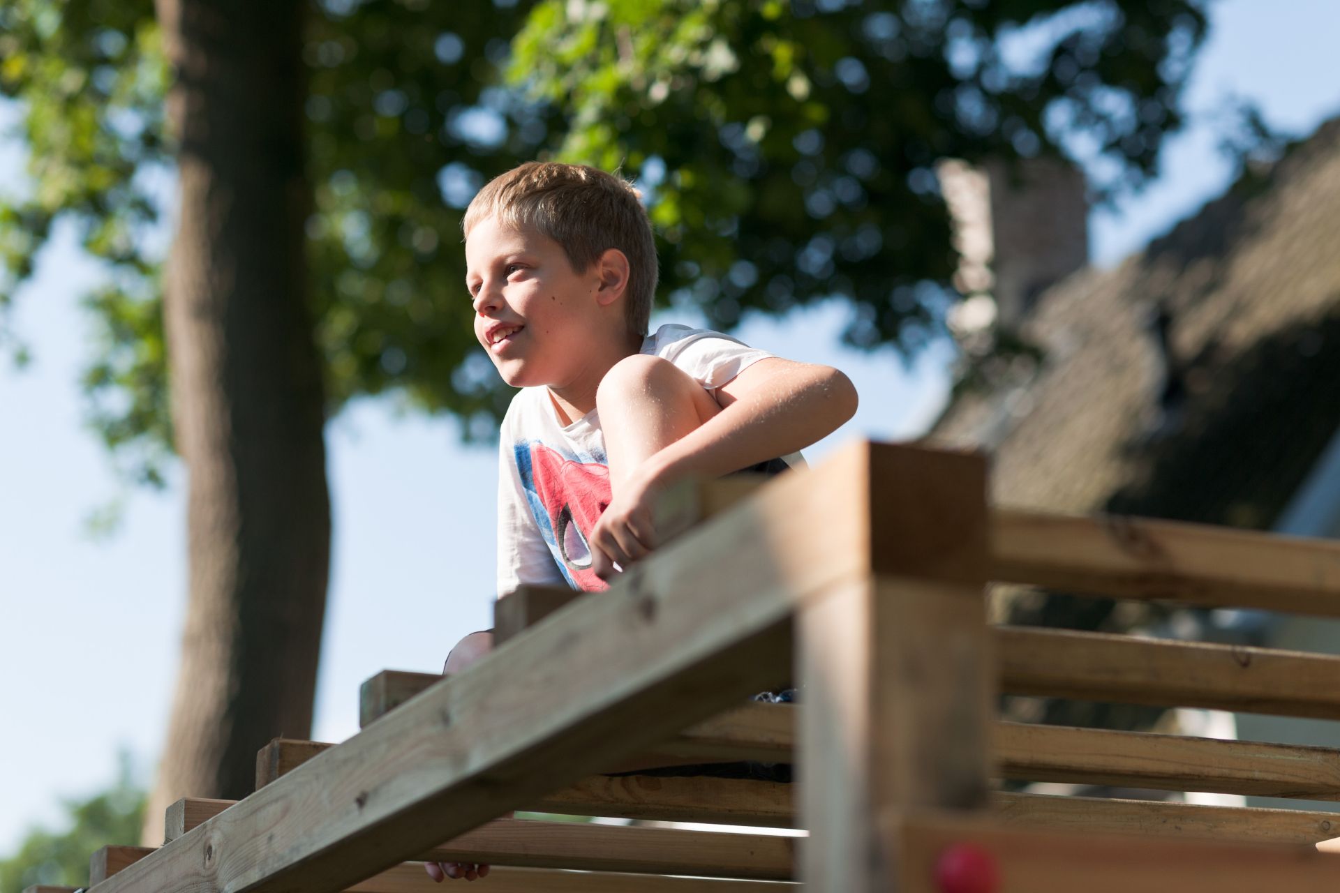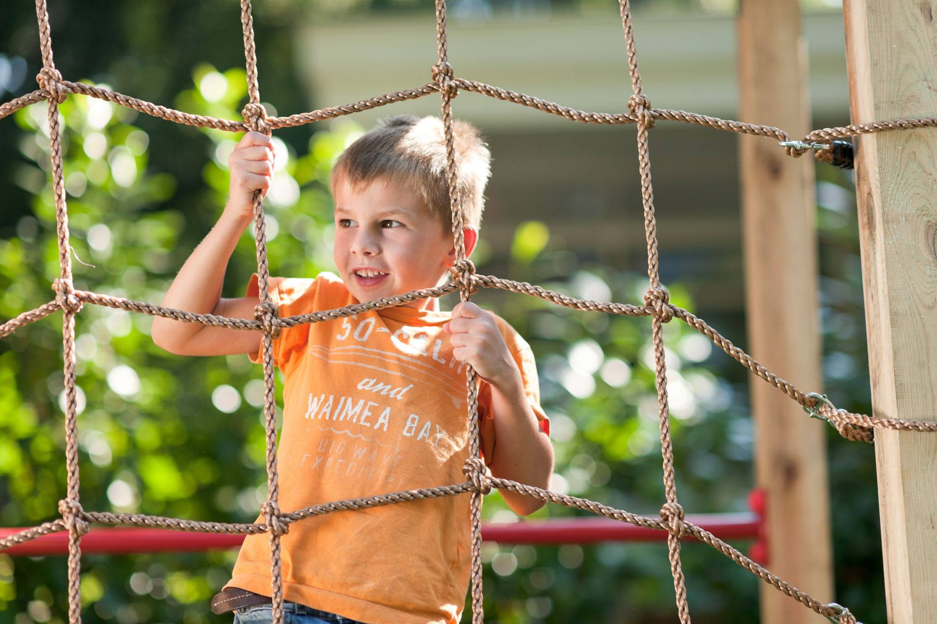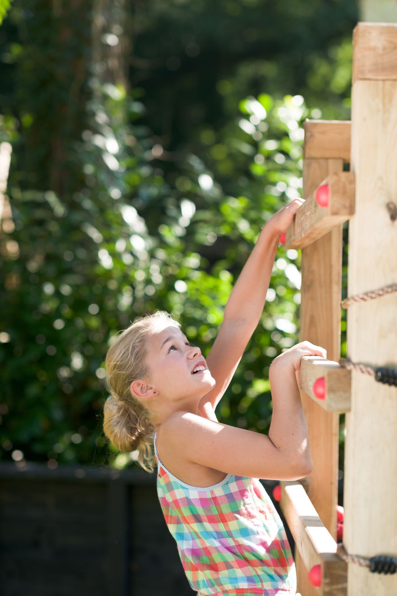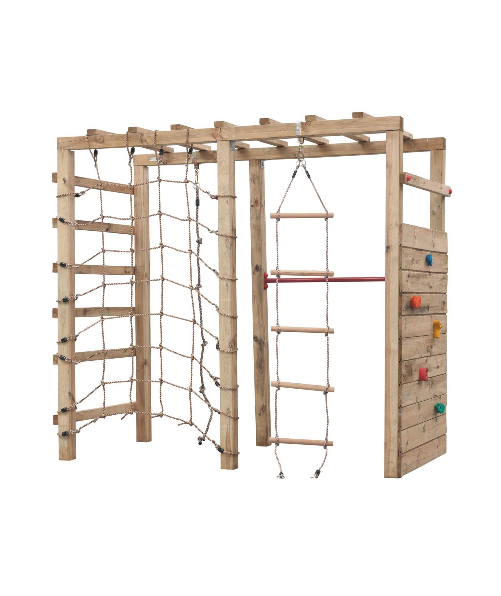 Klimtoestel van vierkant hout dat speciaal gemaakt is voor kinderen die maar al te graag klimmen.