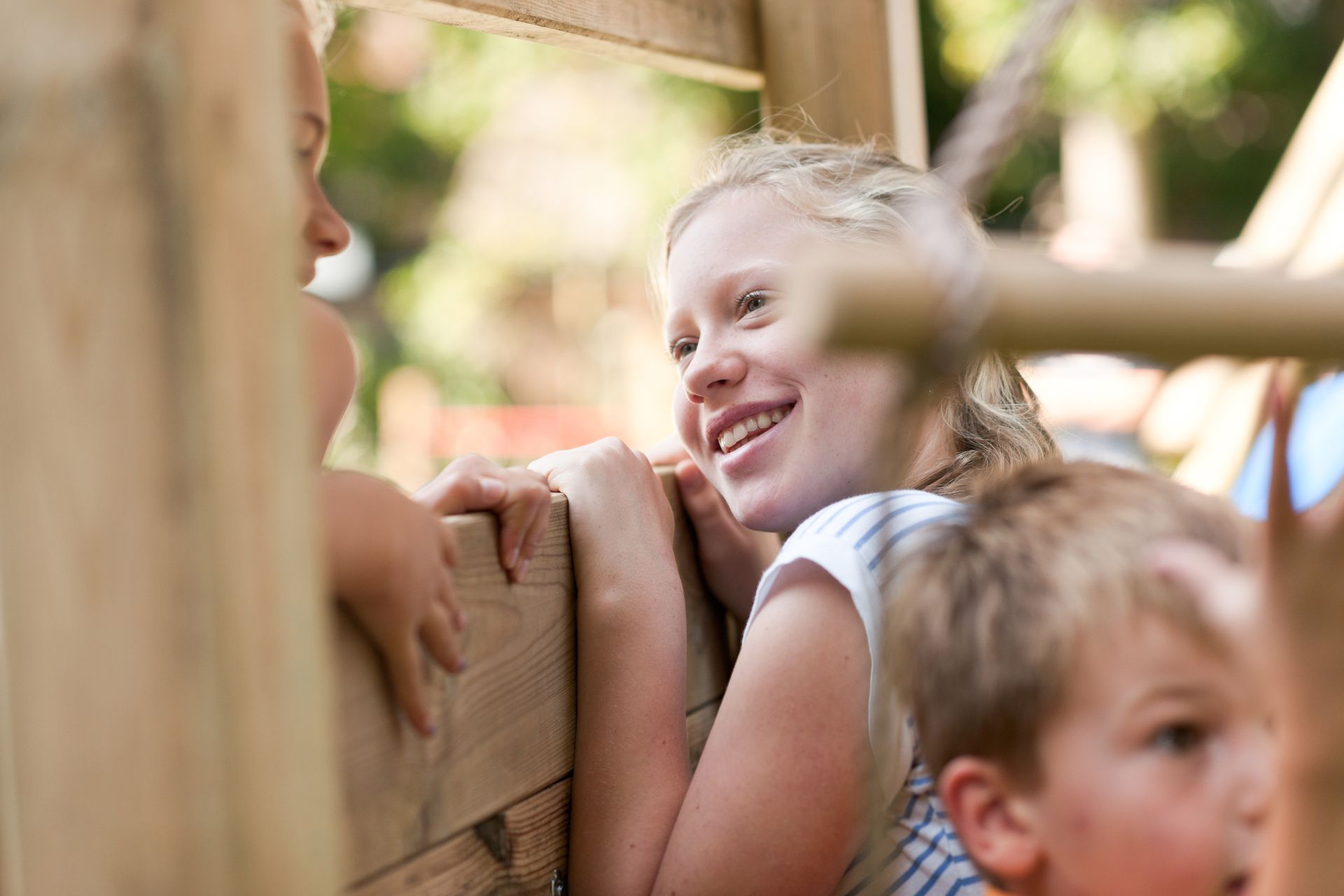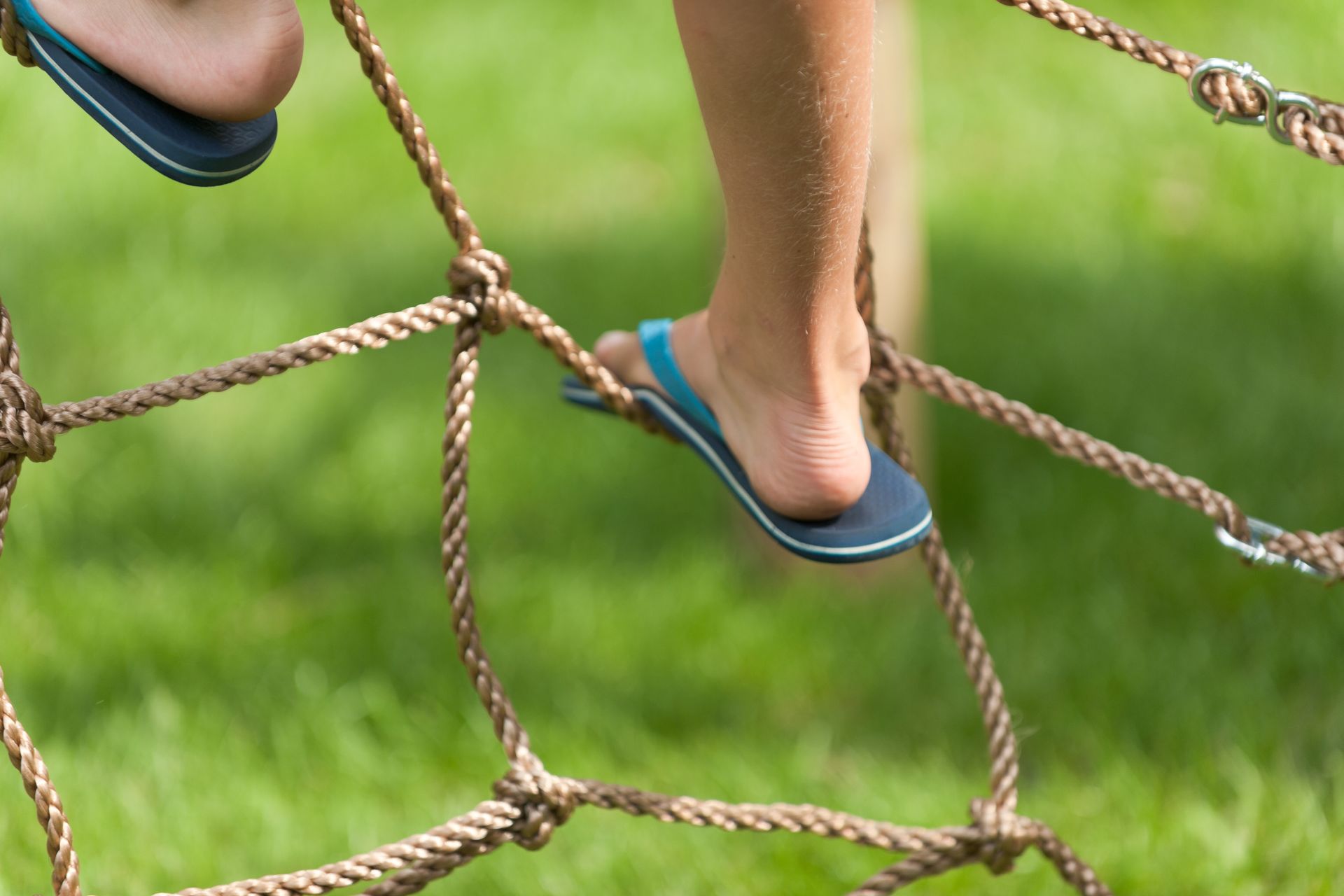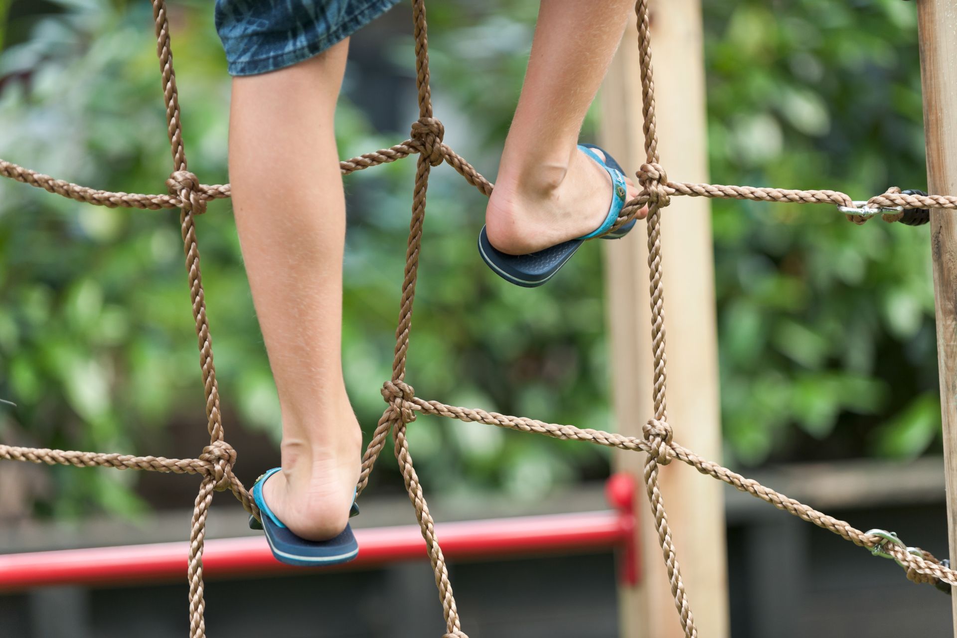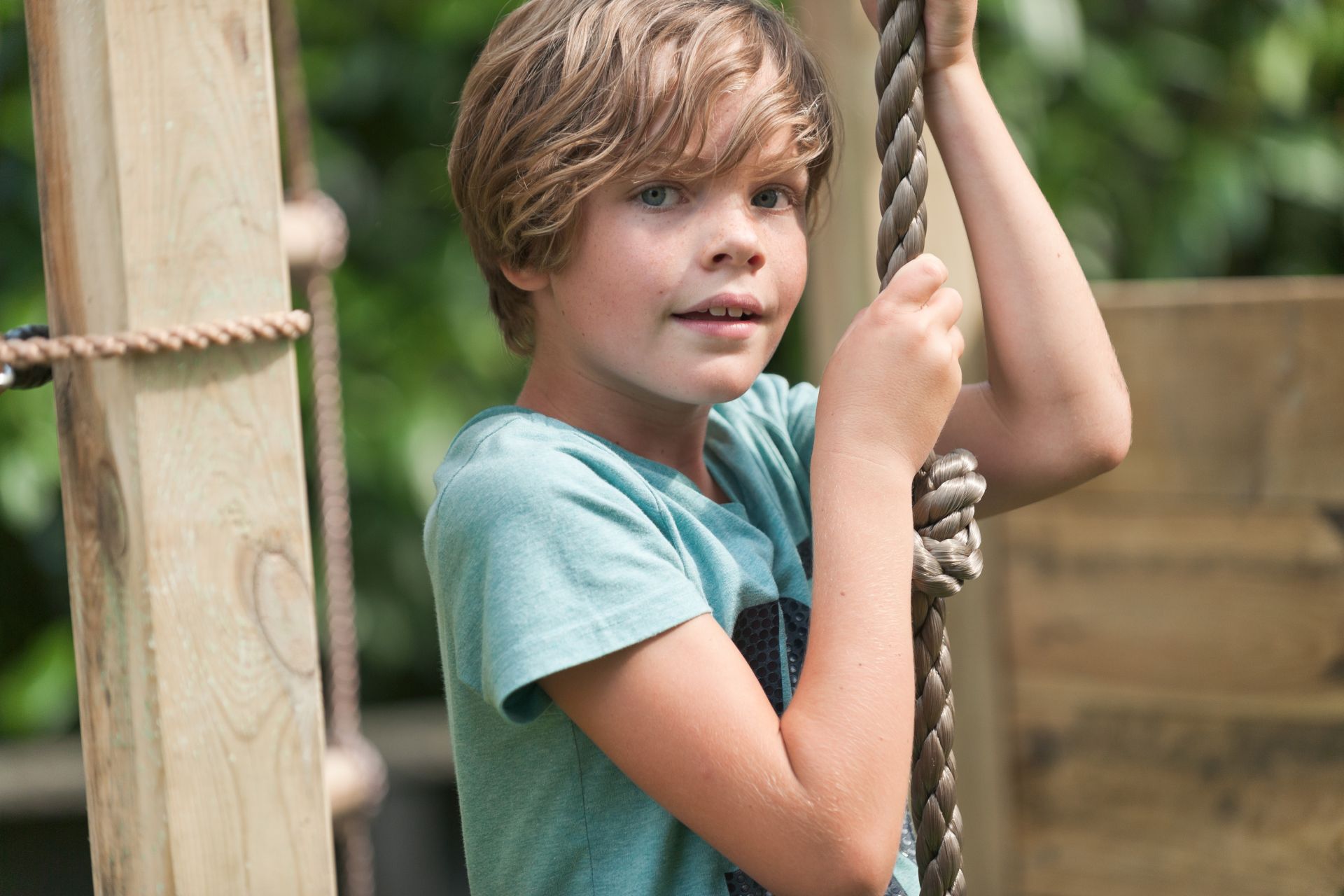 Klimtoestel van vierkant hout dat speciaal gemaakt is voor kinderen die maar al te graag klimmen.