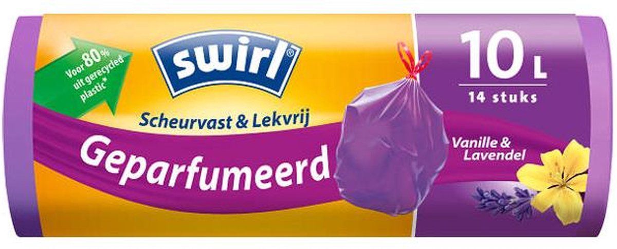 Swirl Pedaalemmerzakken Fixeerband 10 l Vanille-Lavendel geparfumeerd - 14 stuks
