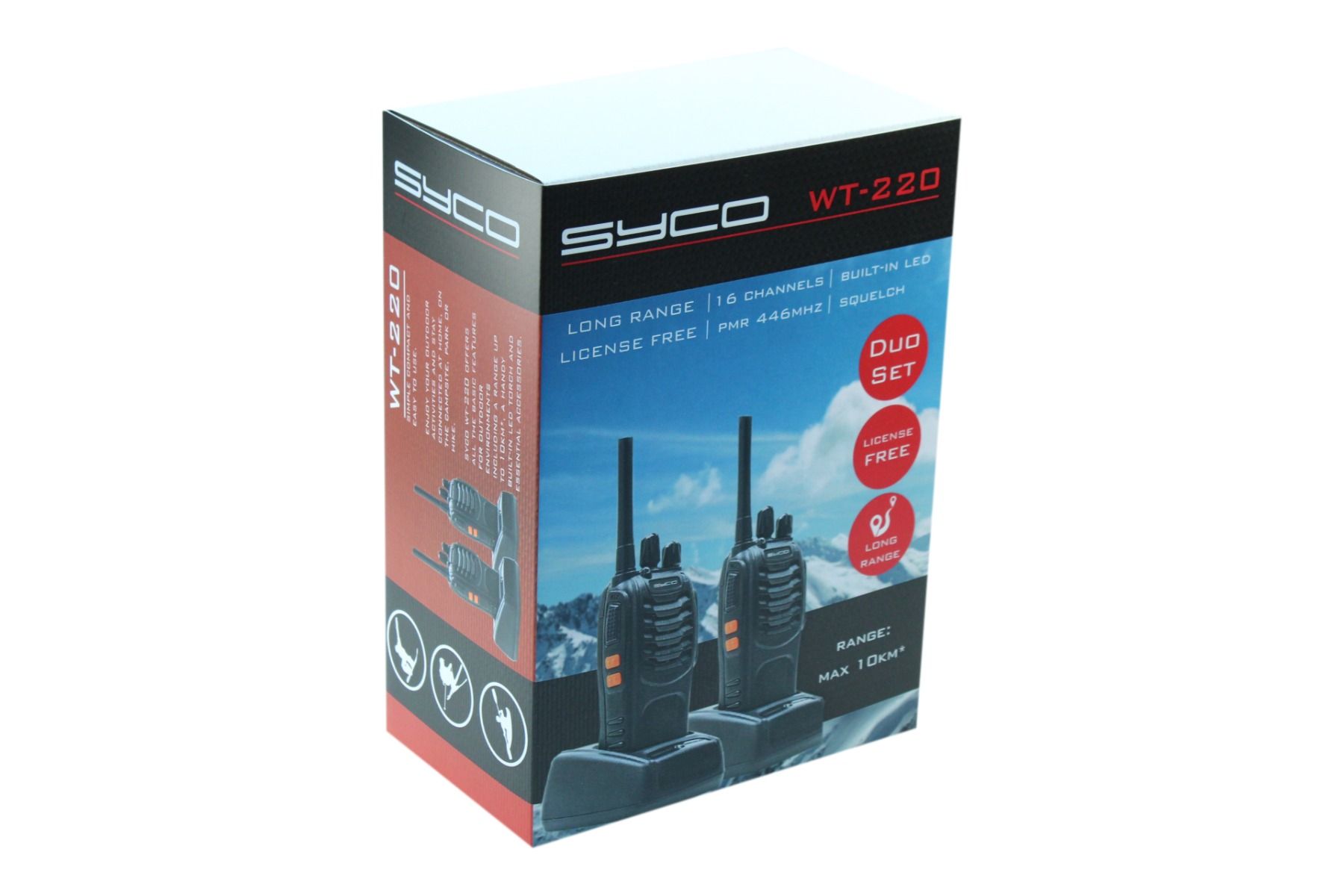 Syco Walkie-Talkie Portable PMR446 Radio Tot max 10km bereik met Led-zaklamp