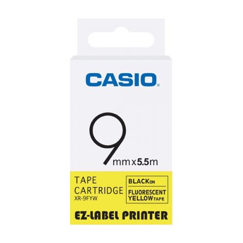 Tape voor Labelprinter Casio - 9mm Zwart op Geel - Fluo