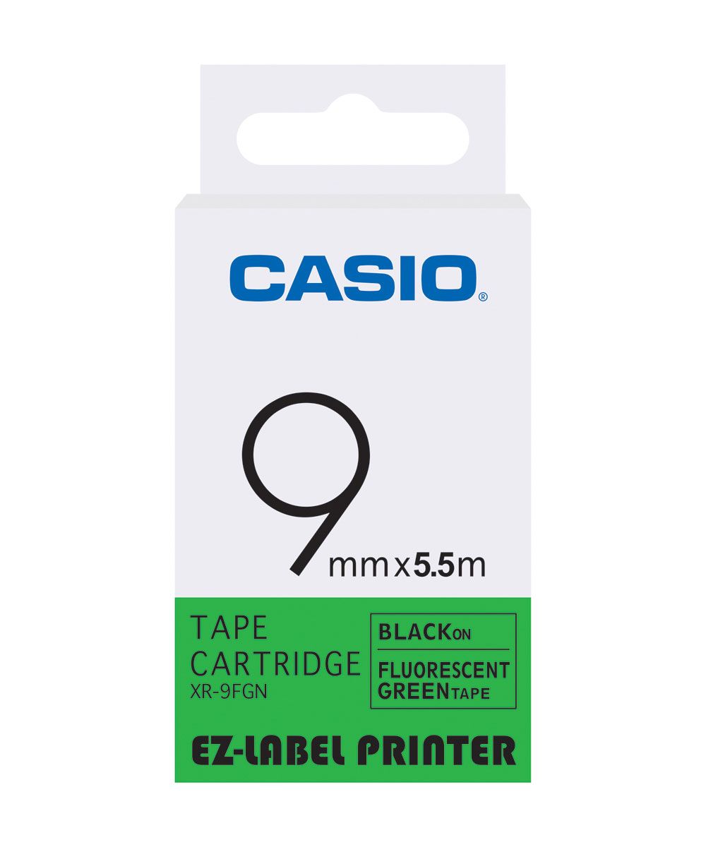 Tape voor Labelprinter Casio - 9mm Zwart op Groen - Fluo