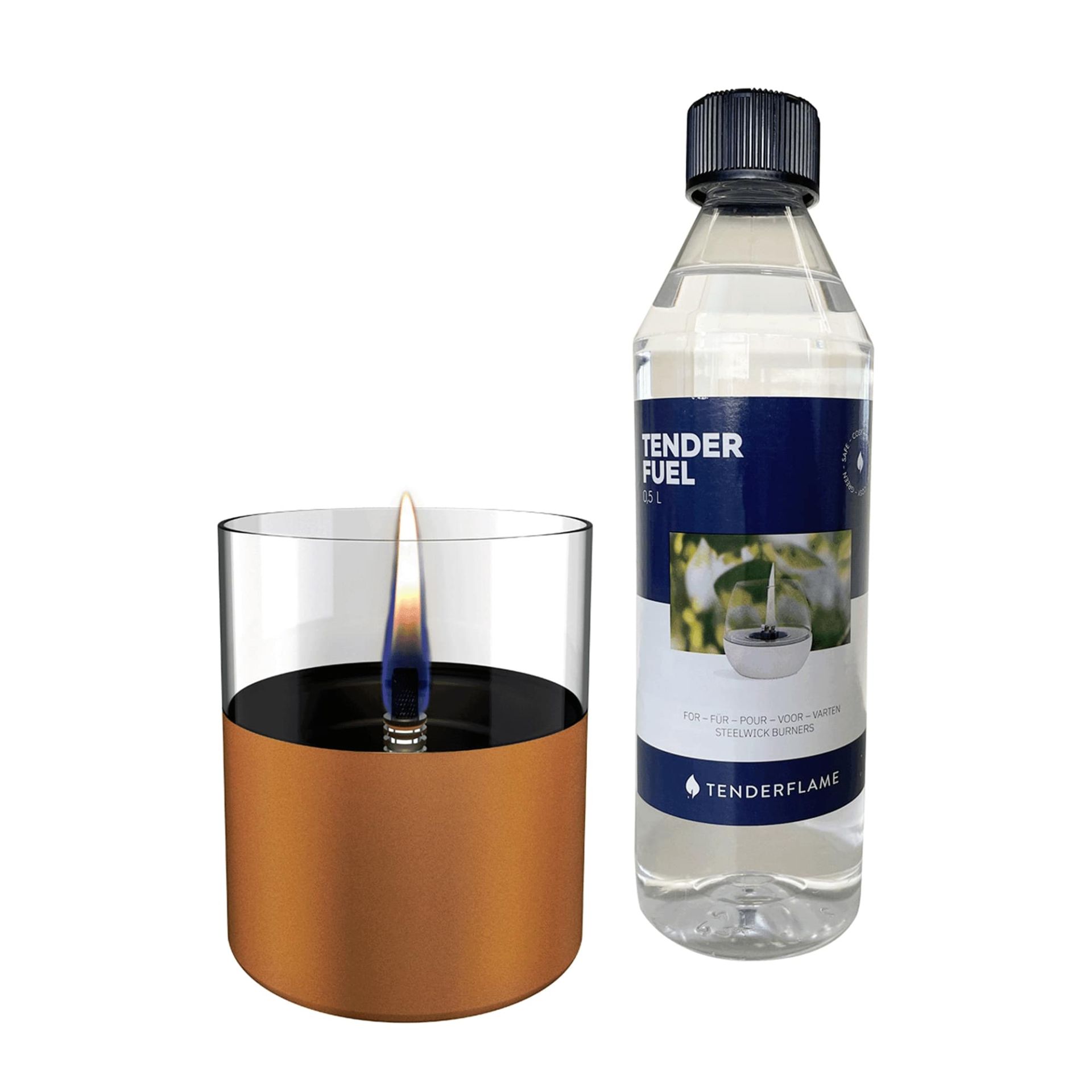 Tenderflame Set Oliekaars Lilly 10 Koper & 500ml Tenderfuel Navulolie - Glas - 8 Branduren - 300ml - 10x10.5 cm