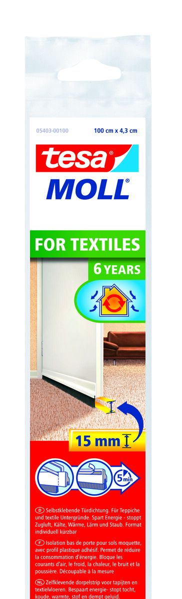 Als je de warmte binnen wilt houden en wilt voorkomen dat koude lucht en stof de kamer binnenkomen, dan is de tesamoll Dorpelborstel for Textiles hét antwoord. Deze effectieve tochtstrip voor deuren is een zelfklevende deurborstel die speciaal is ontwikkeld voor kamers met hoogpolig tapijt. Het kan eenvoudig, zonder boren of schroeven aandraaien, aan de dorpel worden bevestigd. De kunststof montageplaat kan op maat worden gesneden. De borstel met extra lange en elastisch nylon haren dient als perfecte afdichting voor kieren tot 15 mm tussen deur en vloer.