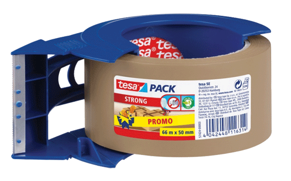 tesapack Strong is een verpakkingstape die geschikt is voor vele huishoudelijke toepassingen. Het is een veelzijdige allround tape die altijd handig is om een pakje te verpakken of af te dichten voor verzending. Door zijn sterke polypropyleen rug biedt hij een hoge uv-bestendigheid. Een speciale zelfklevende coating met een hoge weerstand tegen schuifkrachten garandeert een sterke en betrouwbare hechting. Gebruik de tape in combinatie met een van de tesa®-handdispensers voor een eenvoudige hantering en snelle verpakking.