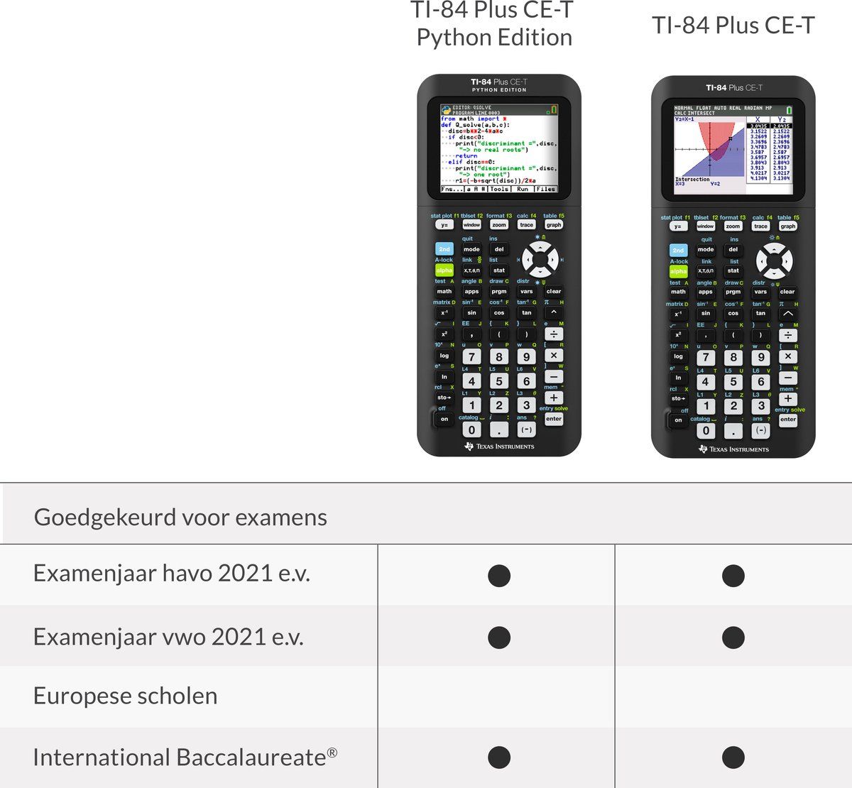 - Vergelijkbare eigenschappen als de TI-84 Plus CE-T