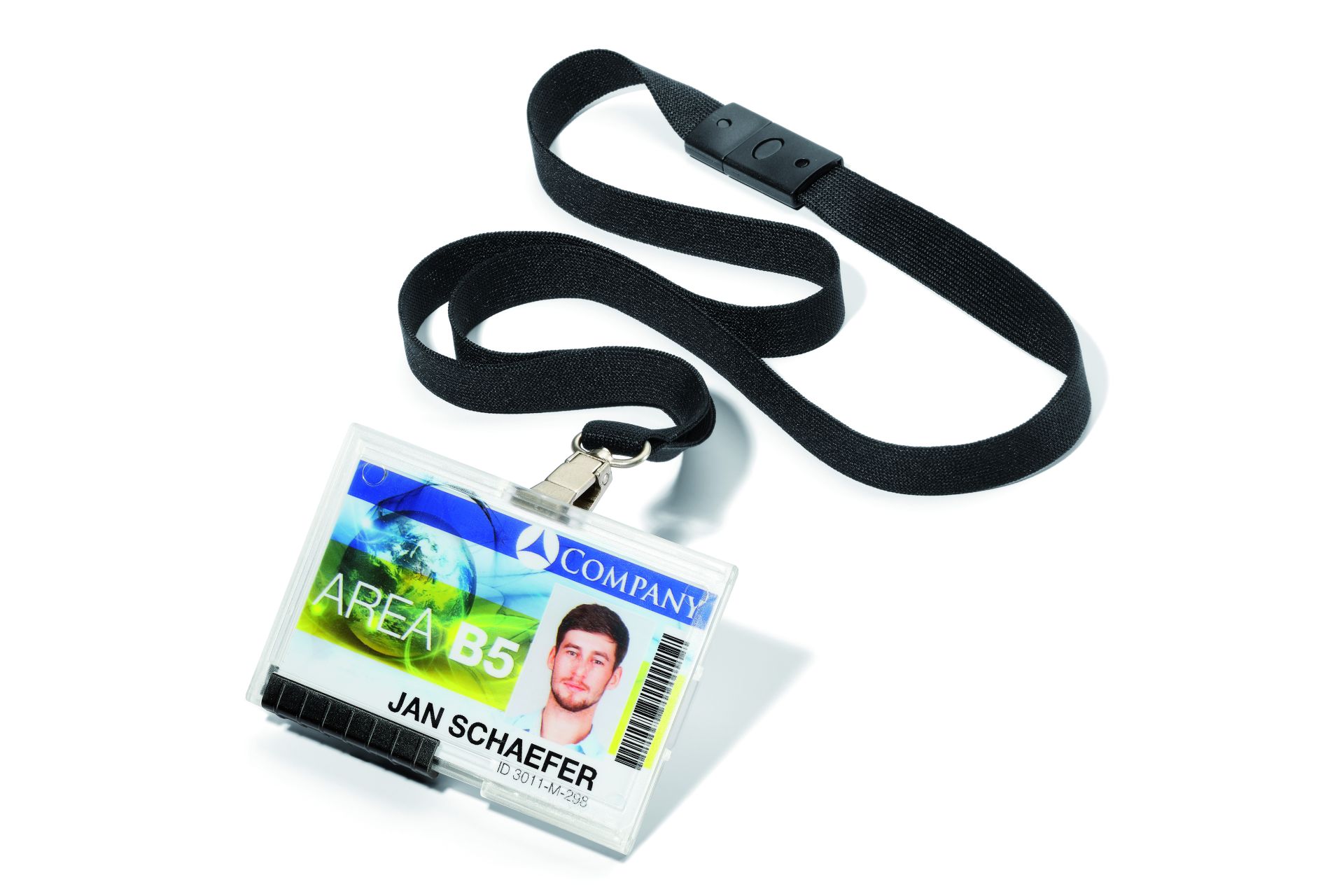 Textielkoord met Pushbox Mono Durable - Zwart - Lanyard Badgehouder