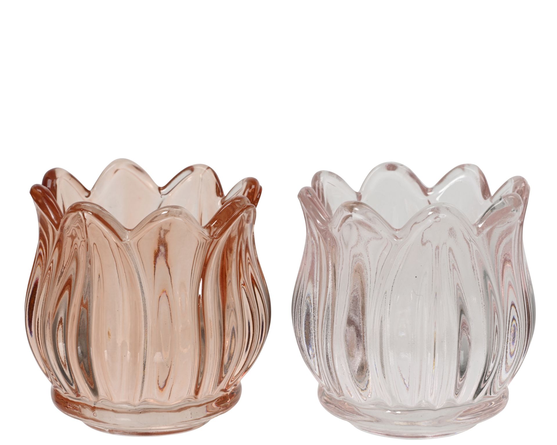 Theelichthouder Glas Bloem 7x7 cm Roze/Poederroze - assorti