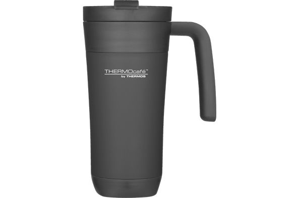 Thermos Drinkbeker 425 ml Travel Mug Zwart - met Handvat - Flip Lid - met RVS Binnenfles