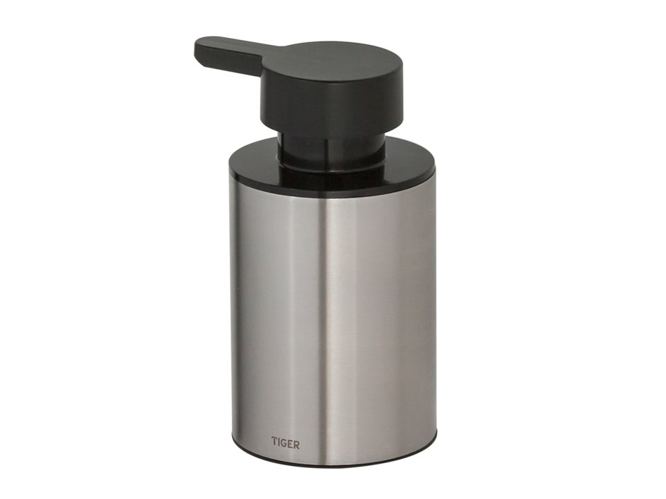 De vrijstaande zeepdispenser uit de Colar serie van Tiger is uitgevoerd in geborsteld RVS en geschikt voor gebruik in zowel de badkamer, het toilet als de keuken. Het zeeppompje is eenvoudig in gebruik en is voorzien van een makkelijk te vullen uitneembaar zeepreservoir.