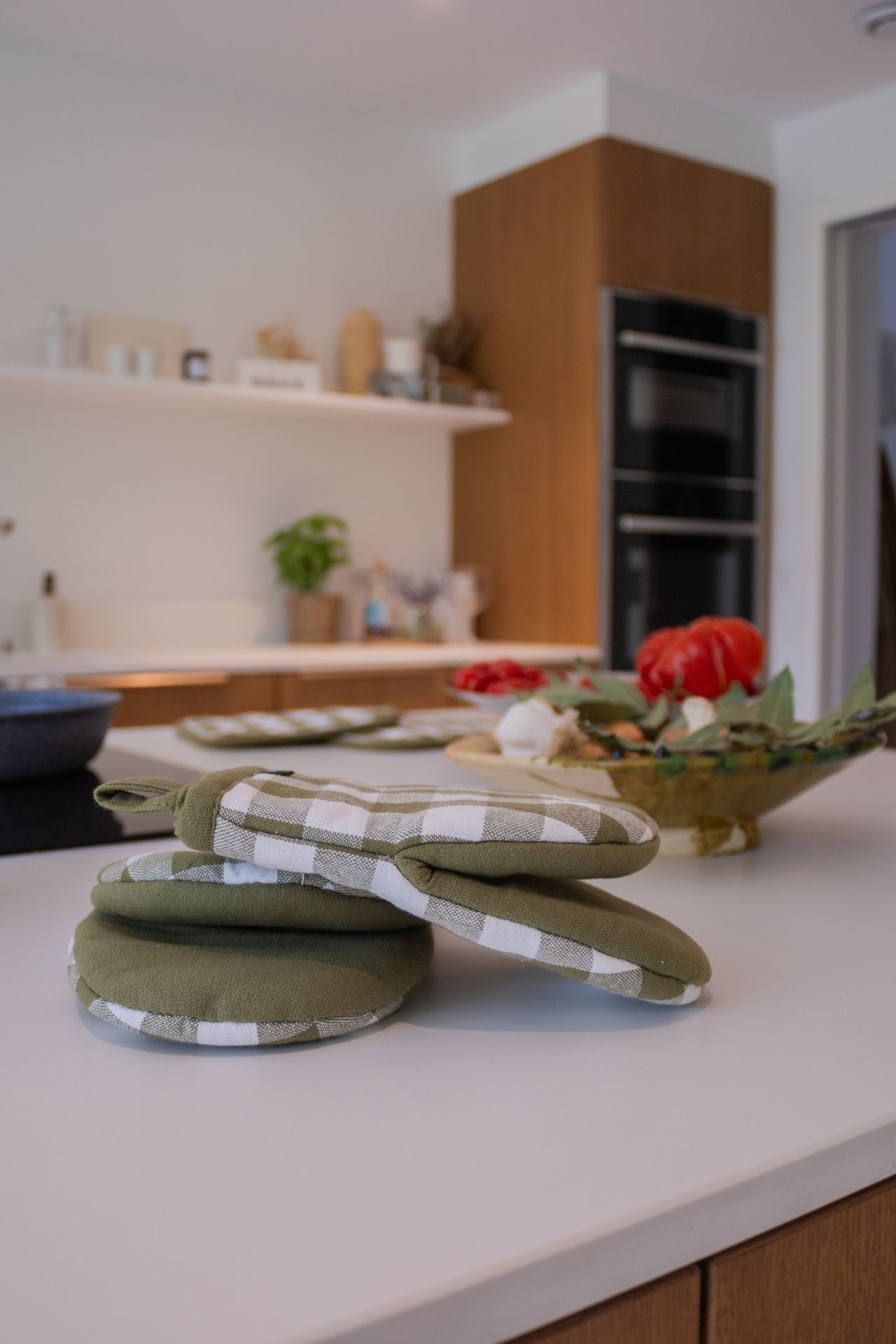 Tiseco Home Studio Gripper Gingham 13x19 cm Olijfgroen 2 stuks