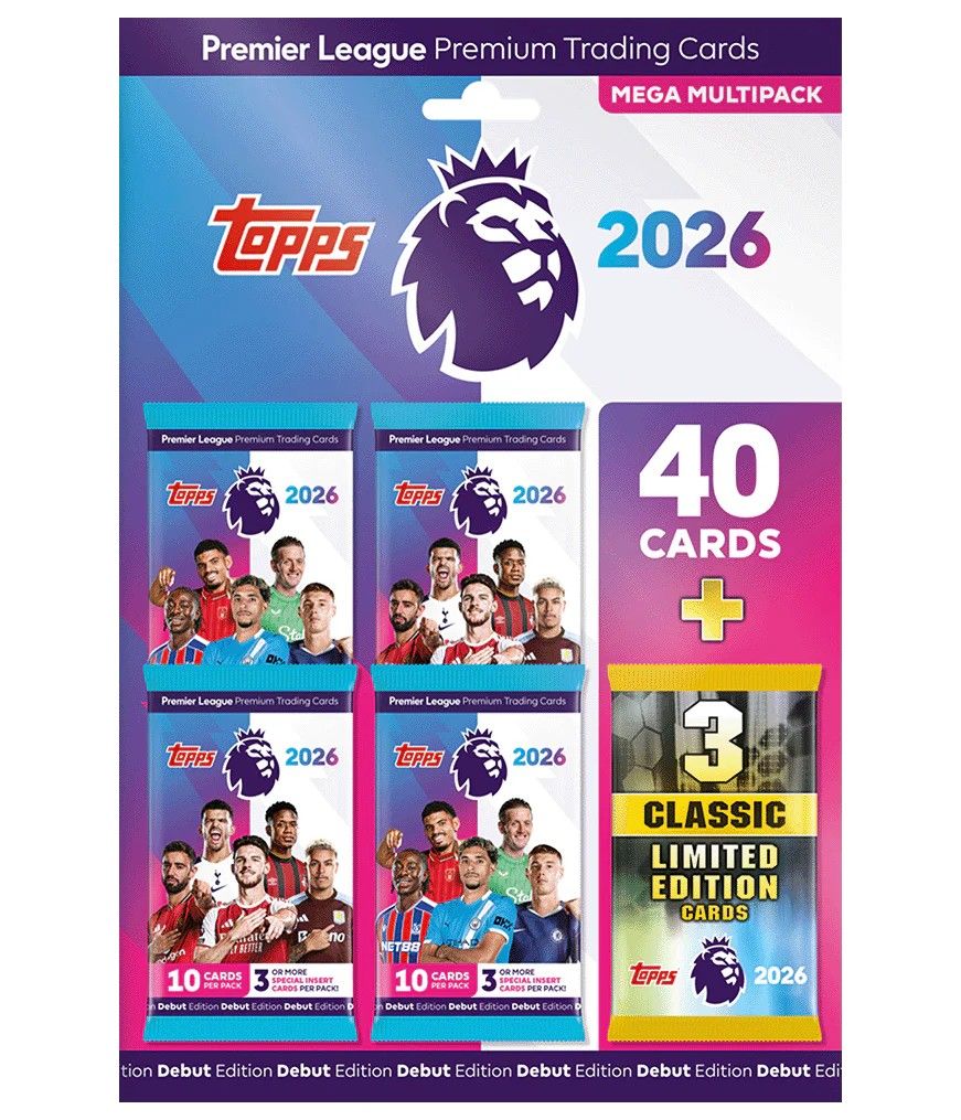 Topps Premier League 2026 Mega Multipack 40 Kaarten + 3 Lim Ed