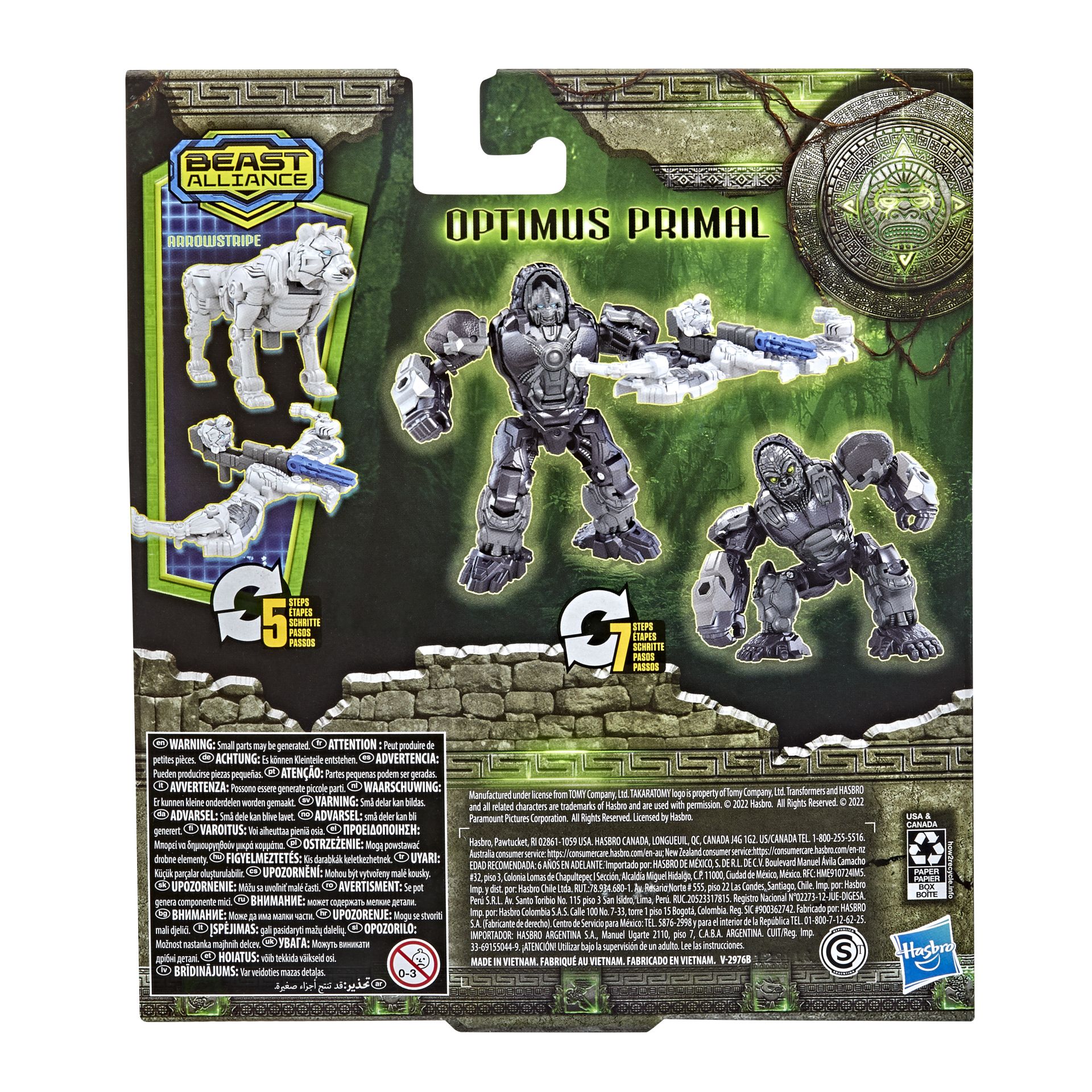 2 STANDEN: de Transformers Optimus Primal-actiefiguur verandert van robot in gorilla in 7 stappen. Arrowstripe verandert van tijger in kruisboog in 5 stappen