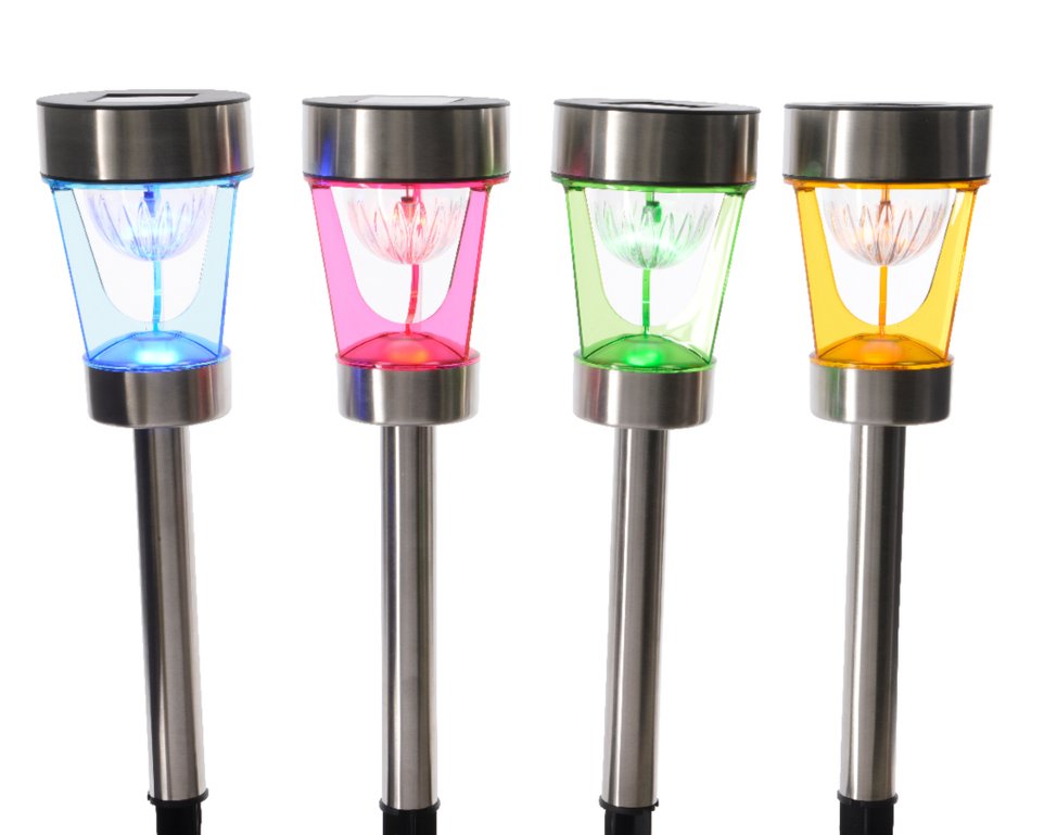 Tuinverlichting LED solar RVS 36cm - Groen/Blauw/Geel/Roze Assorti