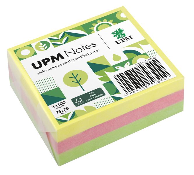 UPM Sticky Notes Geel-Roze-Groen 75x75 cm 3x100 vel