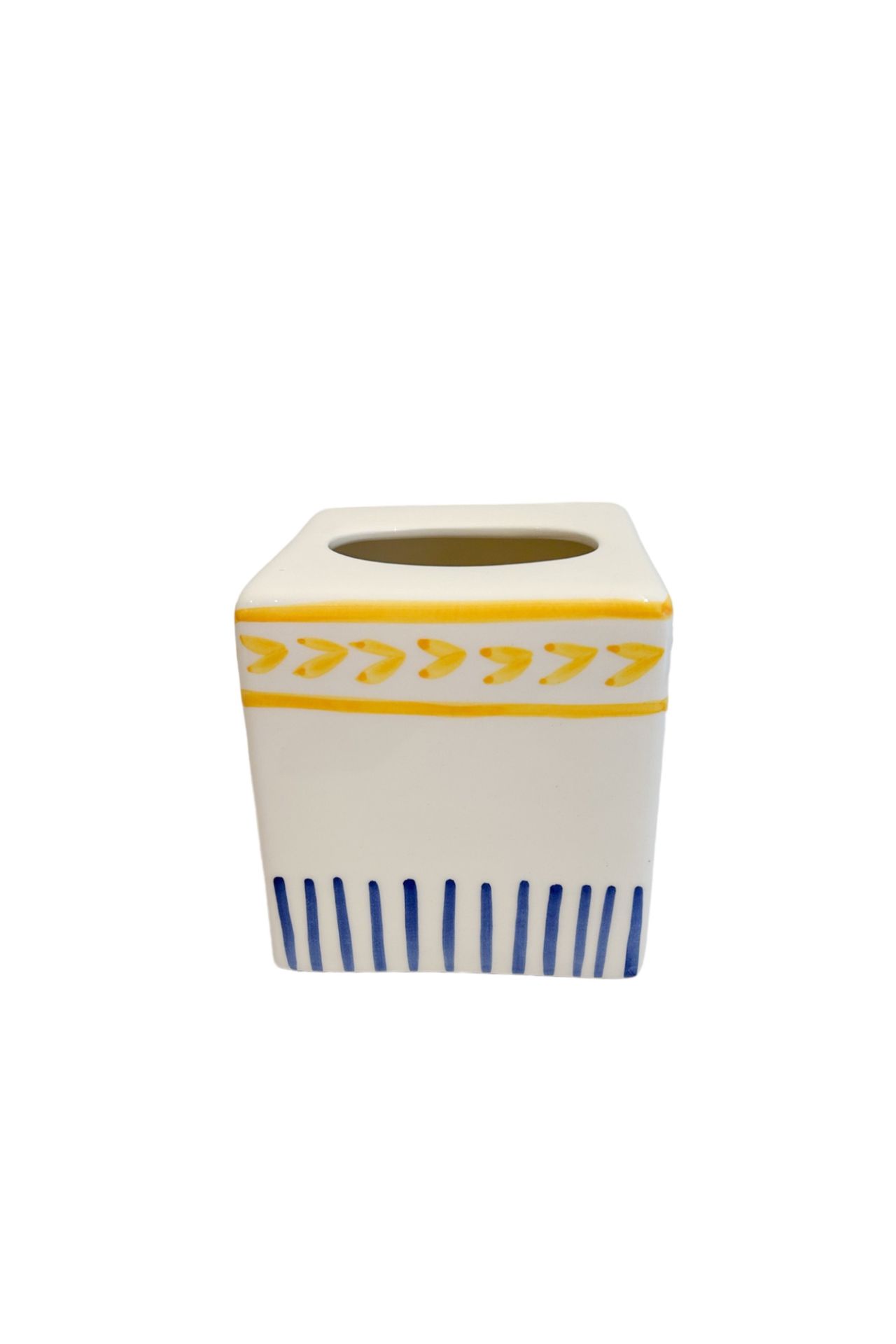 Val Pottery Tissue Box Yellow/Blue - 13.5x13.5x13.5 cm - Handgemaakt Keramiek