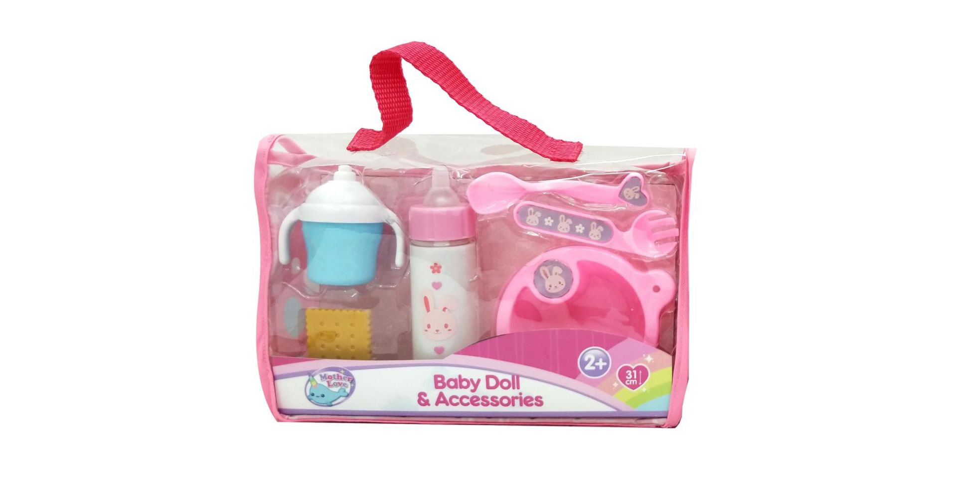 Verzorgingstas met Zuigfles, Drinkbeker, bord en bestek
