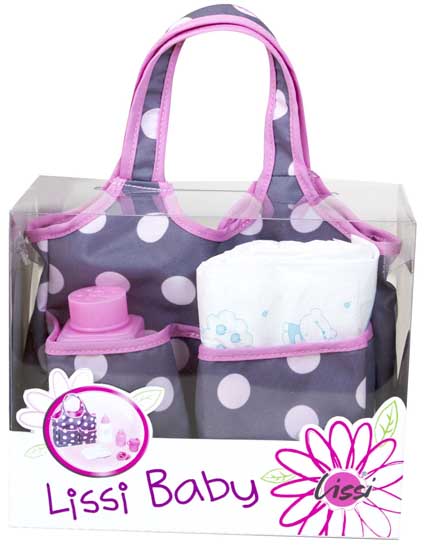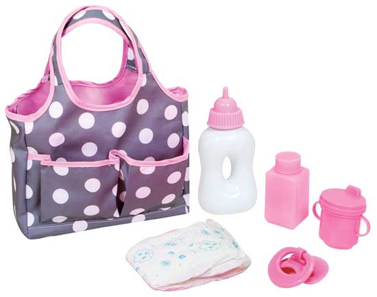 Verzorgingstas voor Poppen gevuld met luier, flesje, beker, poederpotje, speen