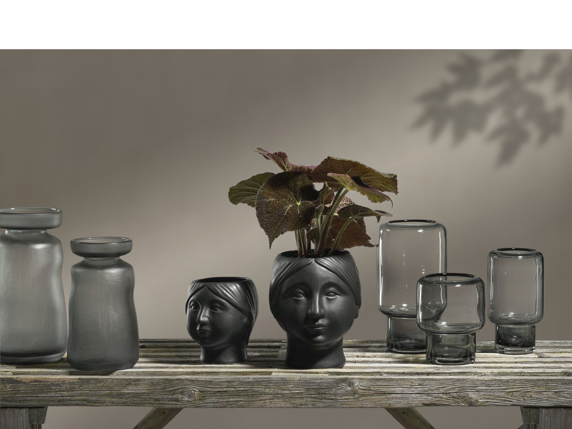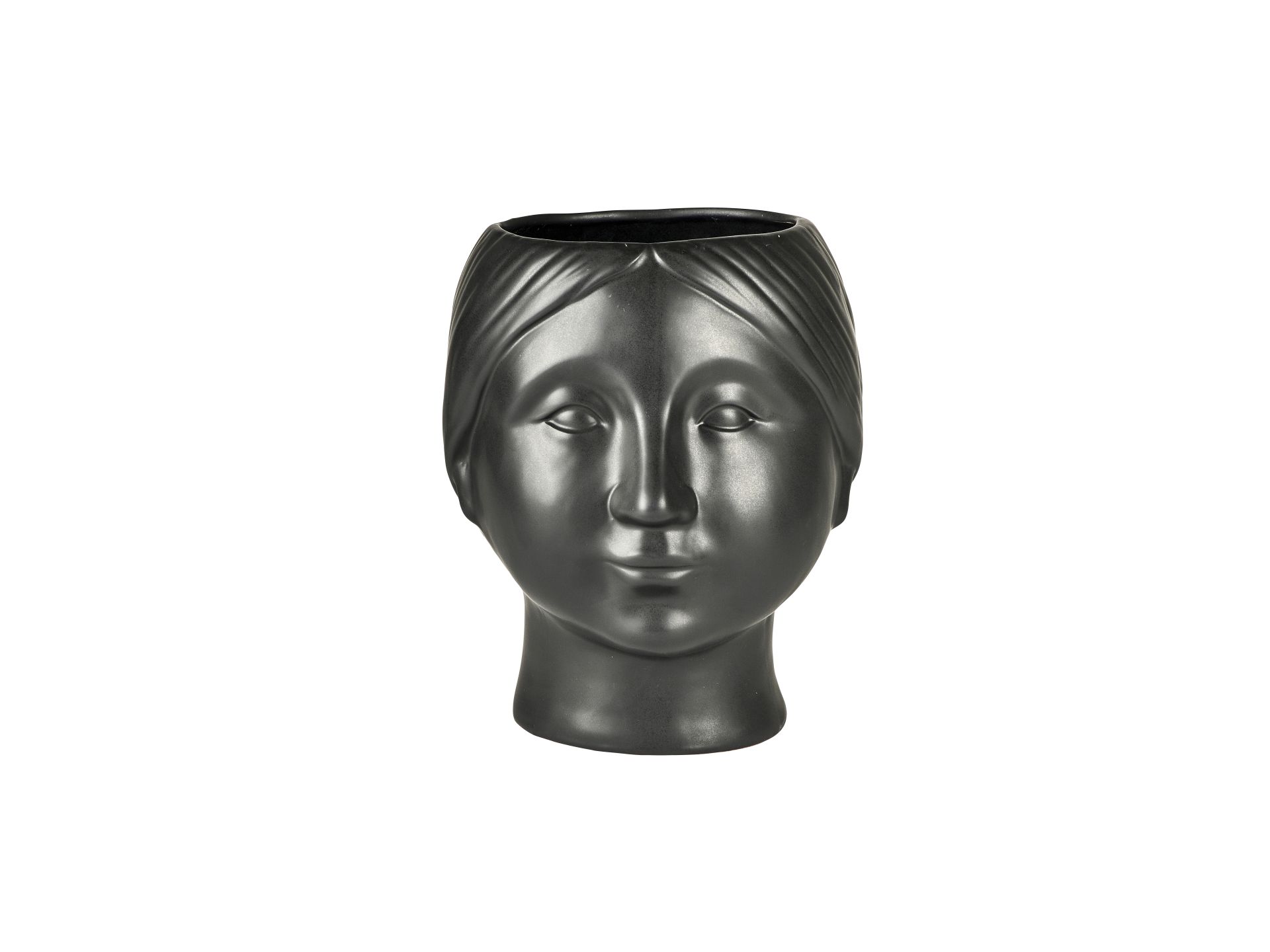 Villa Collection Bloempot Head Black - Aardewerk - 19.5x17.8x21.3 cm