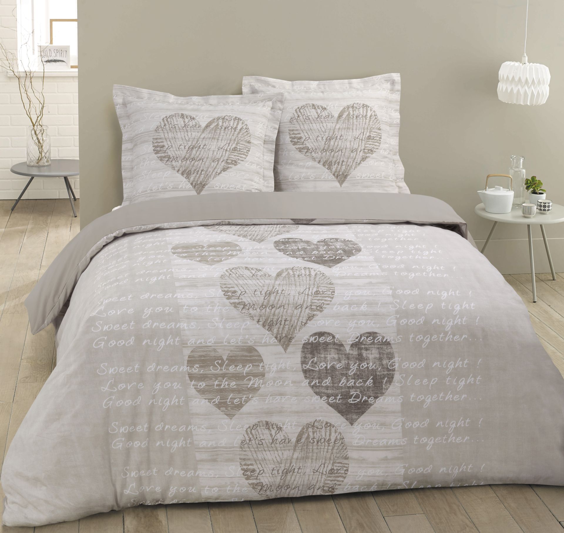 Vision Dekbedovertrek Alice Taupe Hartje 240x220 cm Katoen