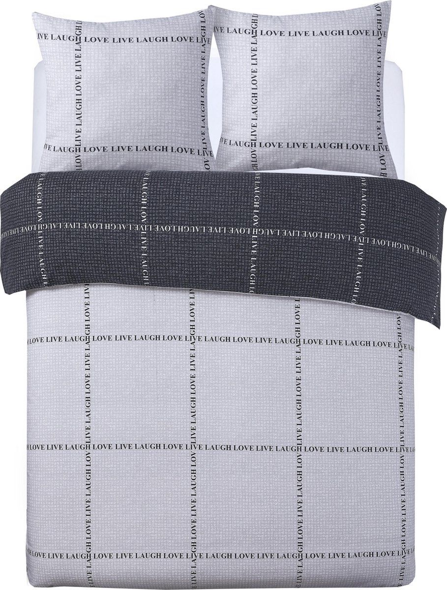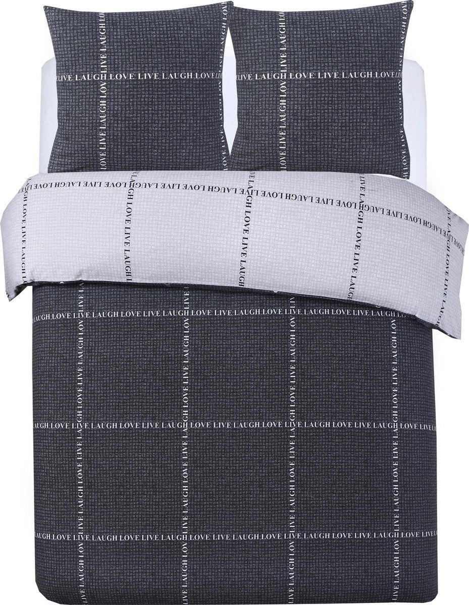 Vision Dekbedovertrek Live Love Laugh Antraciet-Wit 260x220 cm Flanel