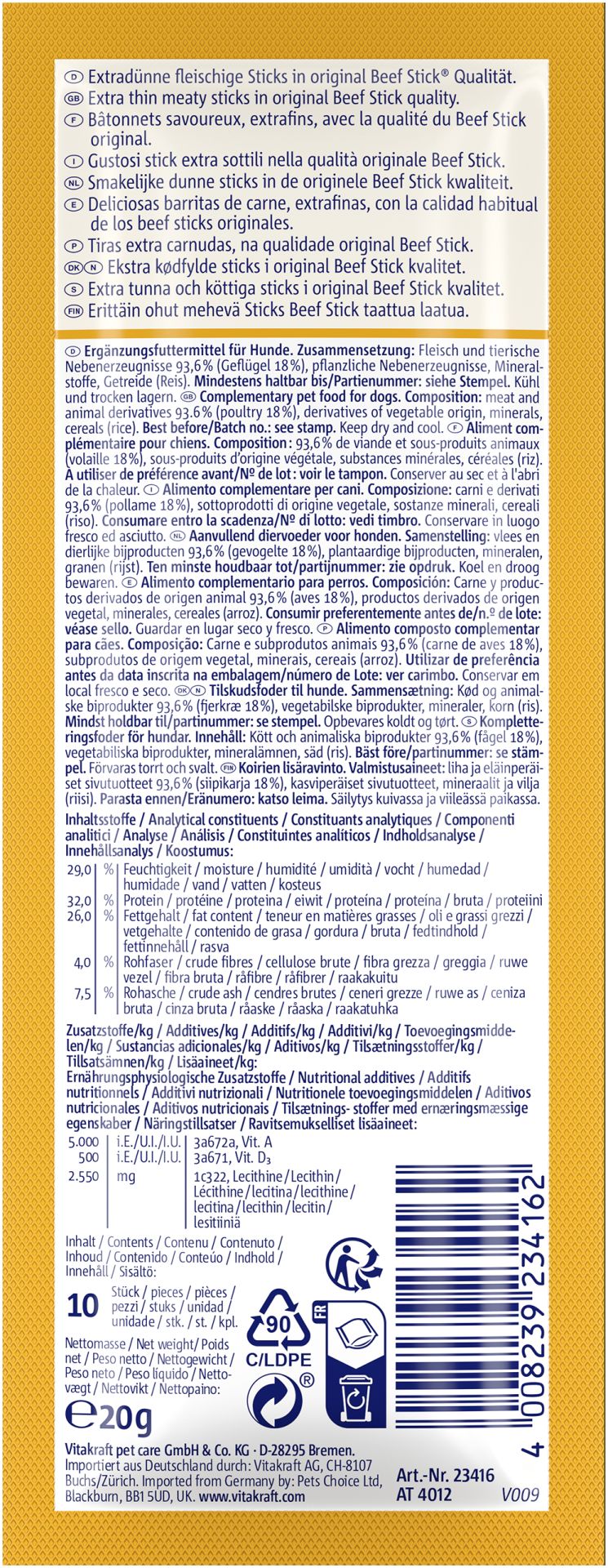 Vitakraft Beefstick School met Gevogelte Afbreekbaar in Kleine Stukjes 10 stuks