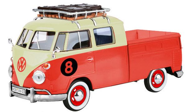 Volkswagen Samba busje Type 2, T1 Pickup rood met rek, Metaal, Schaal 1/24
