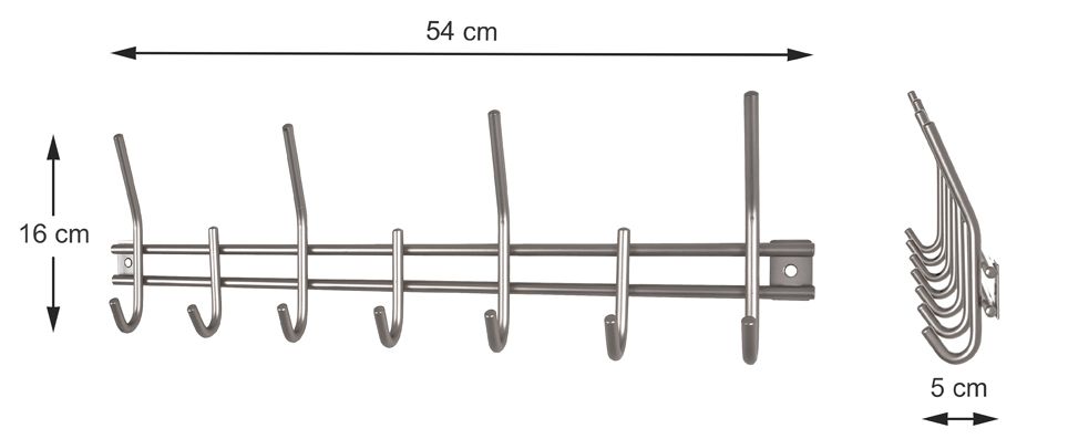 Wandkapstok Carlos 54x5x16 cm Roestvrij Staal met 7 Haken