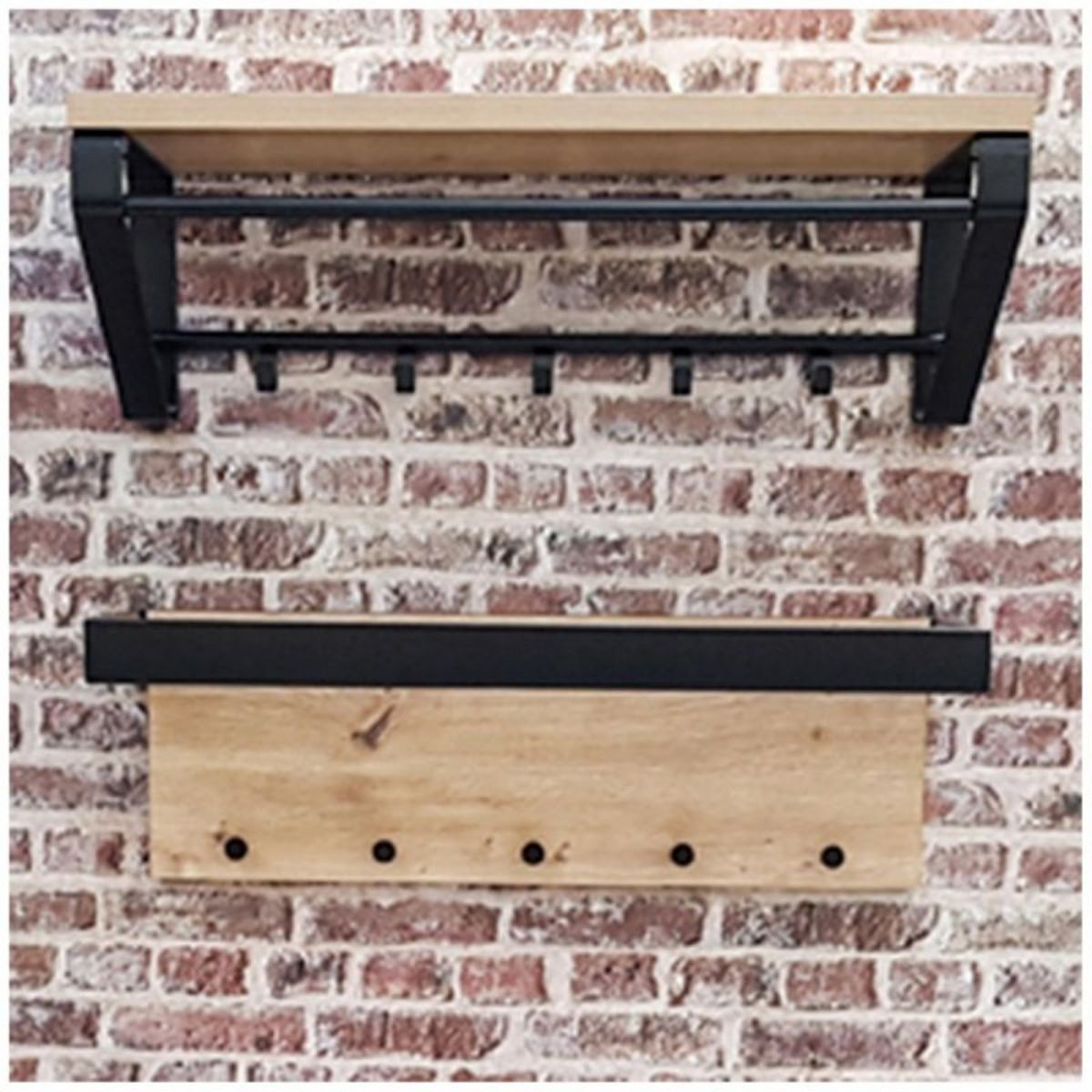 Wandkapstok Felipe 70x24x25cm Eik - Zwart